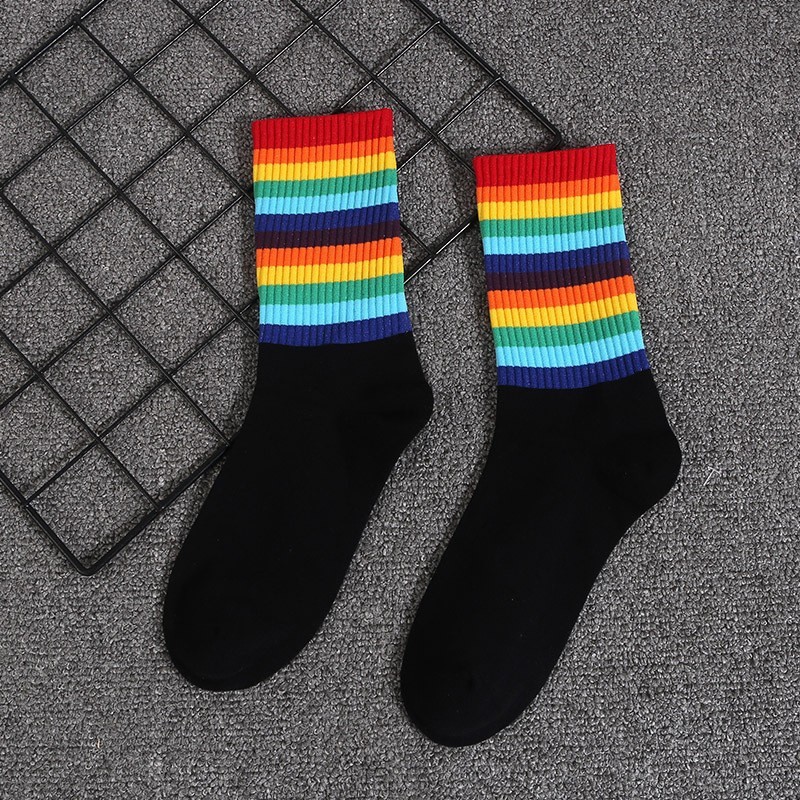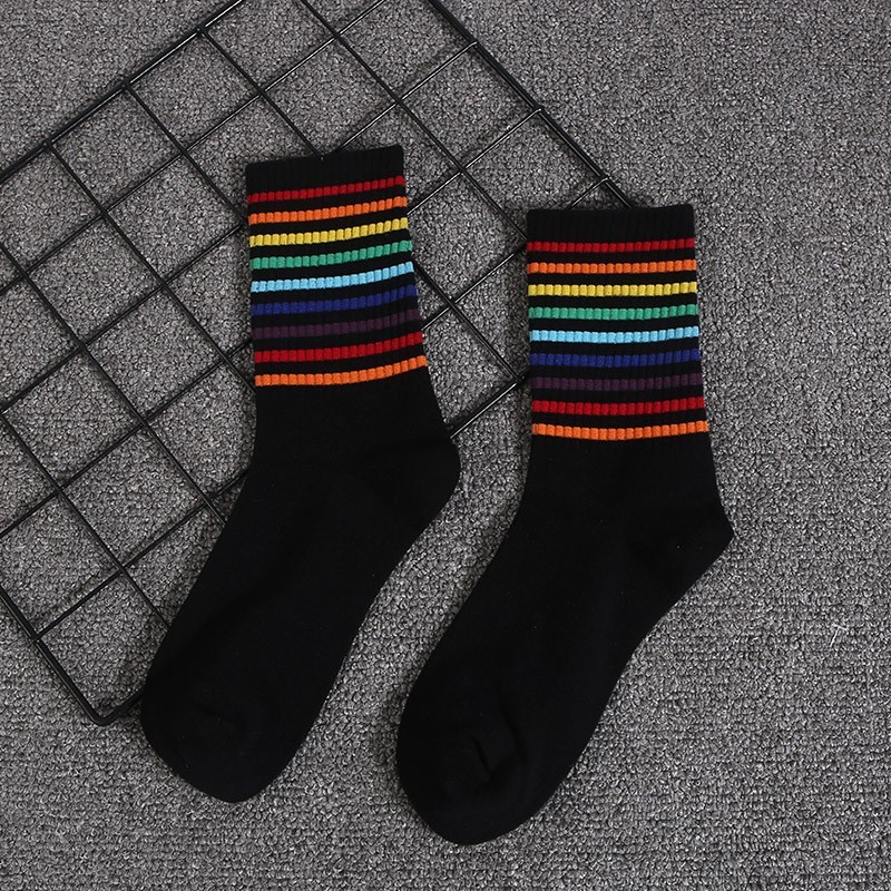 • 3001-94 긴 검정 양말 얇은 무지개