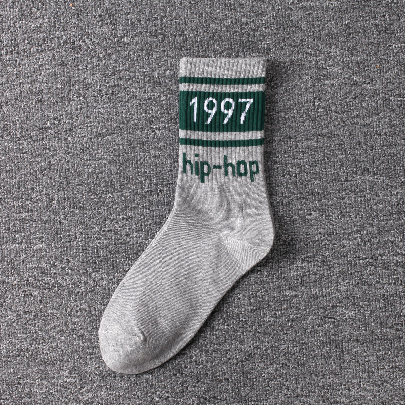 • 3001-18 긴 회색 양말 녹색 바 1997