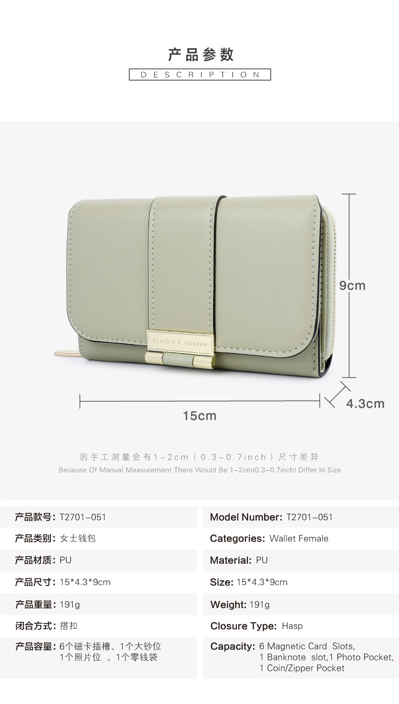 Tillian 2023 새로운 다기능 여성용 지갑 단기 여전히 멀티 카드 크로스 보더 지갑 도매 지갑