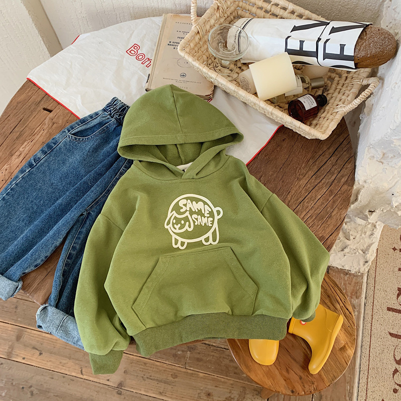 어린이 후드 티셔츠 소년 소녀를위한 2025 새로운 스타일 유행 가을 탑 만화 아기 봄, 가을 느슨한 탑 유행스토어 가기