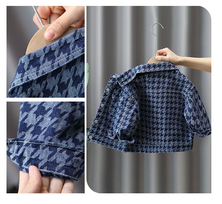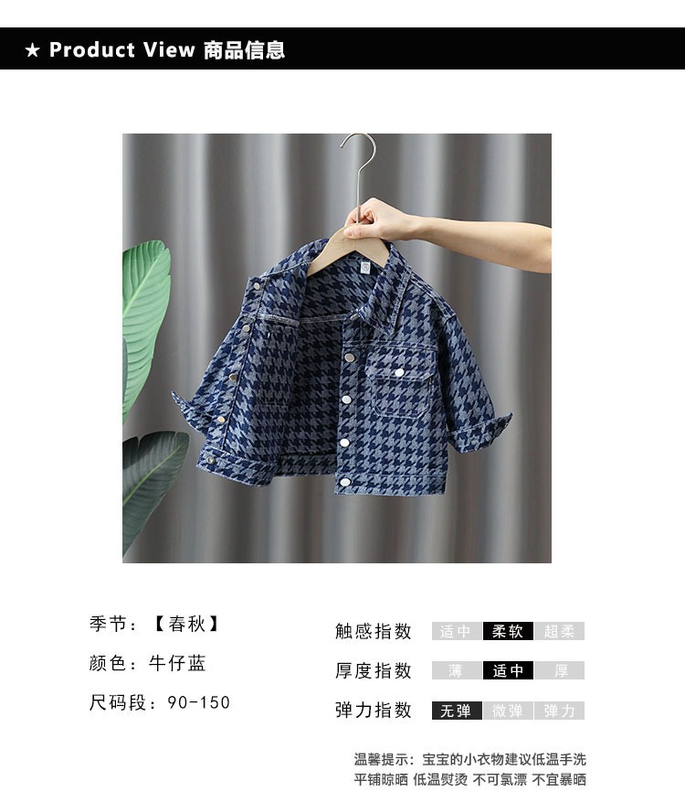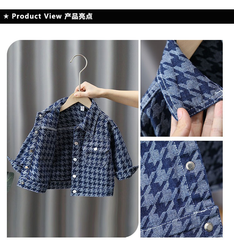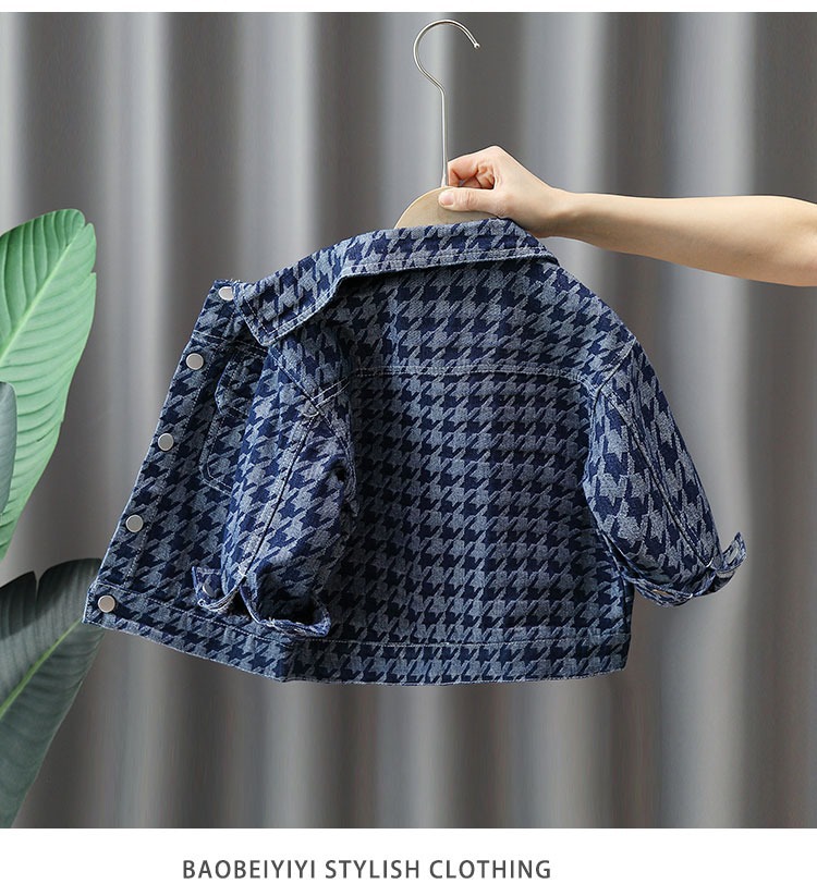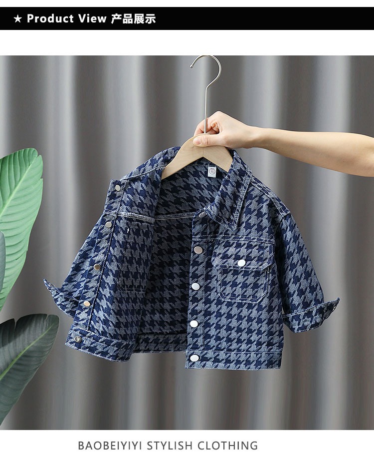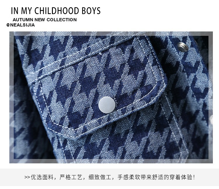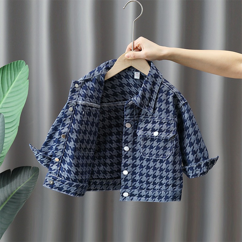 소년 데님 재킷 봄과 가을 아동 의류 2023 신상품 소년 사이버 레드 재킷 어린이 Houndstooth 가을 재킷스토어 가기