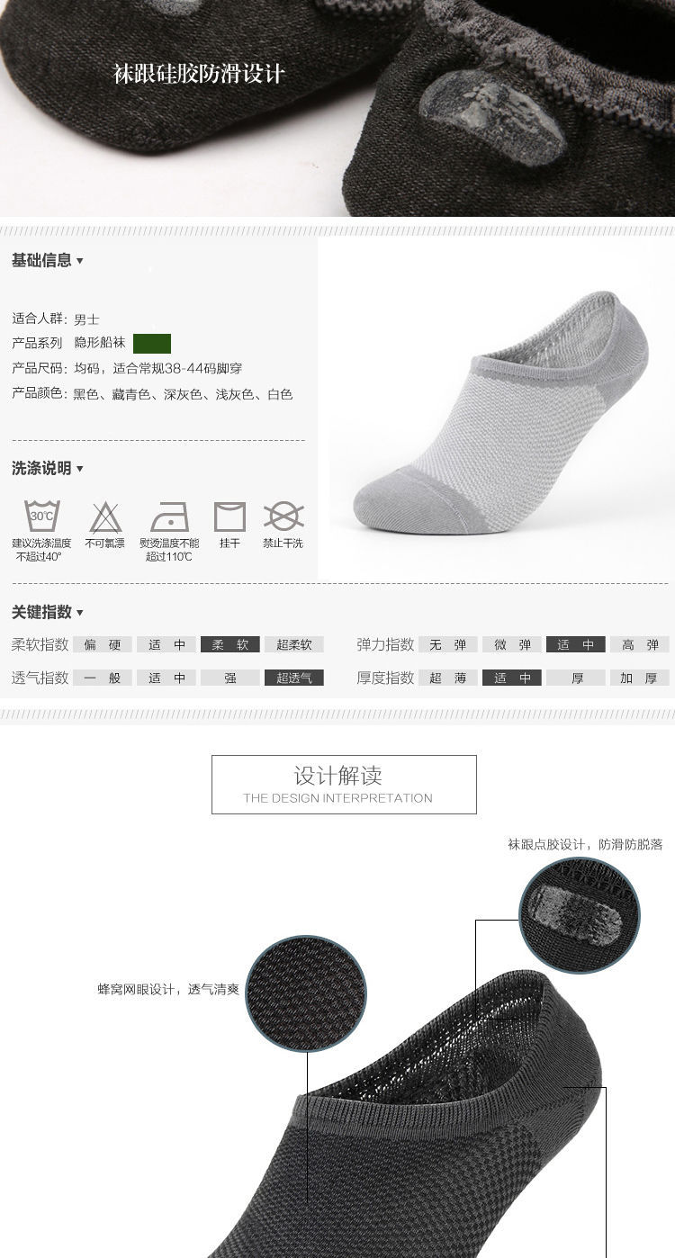 남성용 보트삭스, 여름용 얇은 양말, 땀흡수, 탈취 기능, 발뒤꿈치가 빠지지 않는 양말, 얕은 입구의 투명 양말, 통기성, 발뒤꿈치가 빠지지 않는 투명 양말