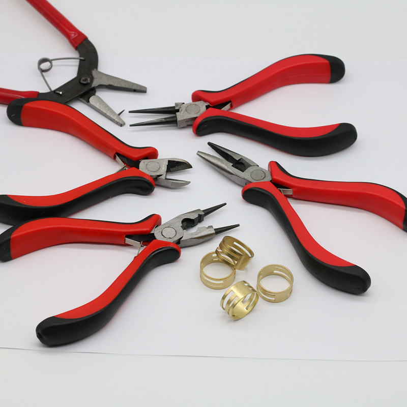 DIY 수제 보석 도구 세트 펜치 펜치 비스듬한 코 펜치 뾰족한 코 펜치 라운드 입 레드 핸들 펜치