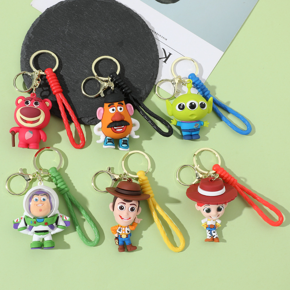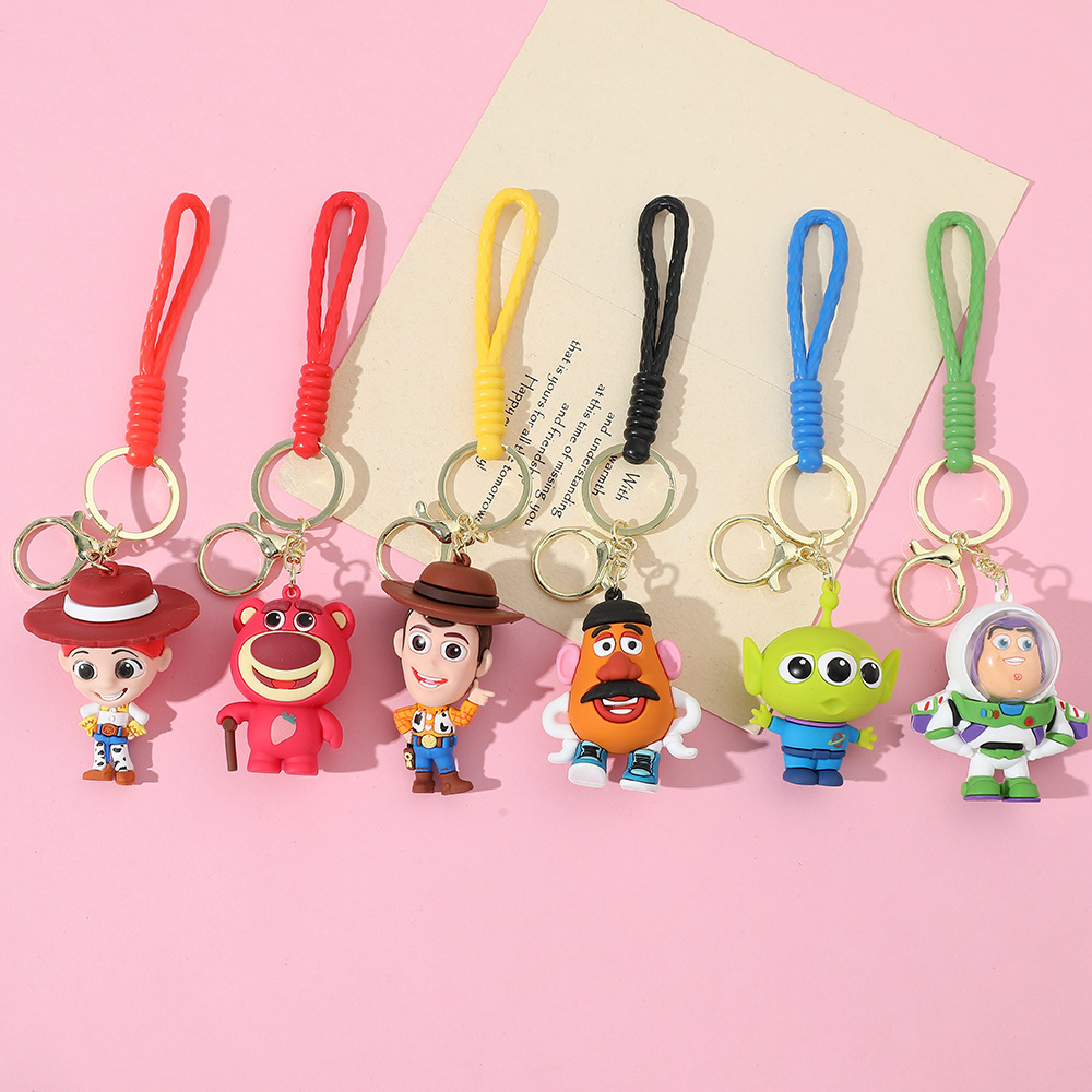 인기 만화 토이 스토리 피규어 실리콘 키체인 삼안맨 버즈 라이트이어 스트로베리 베어 가방 장식품