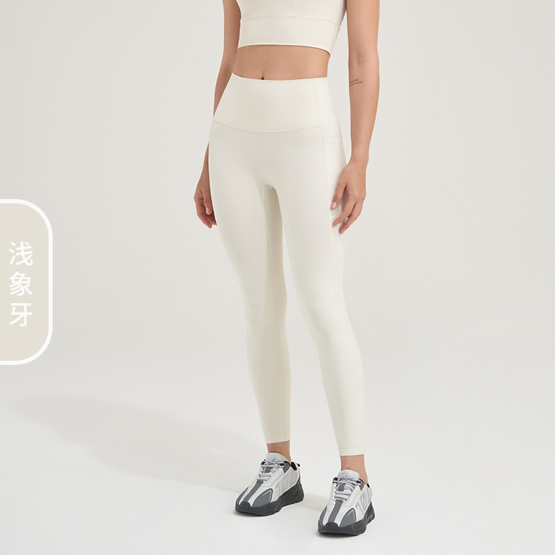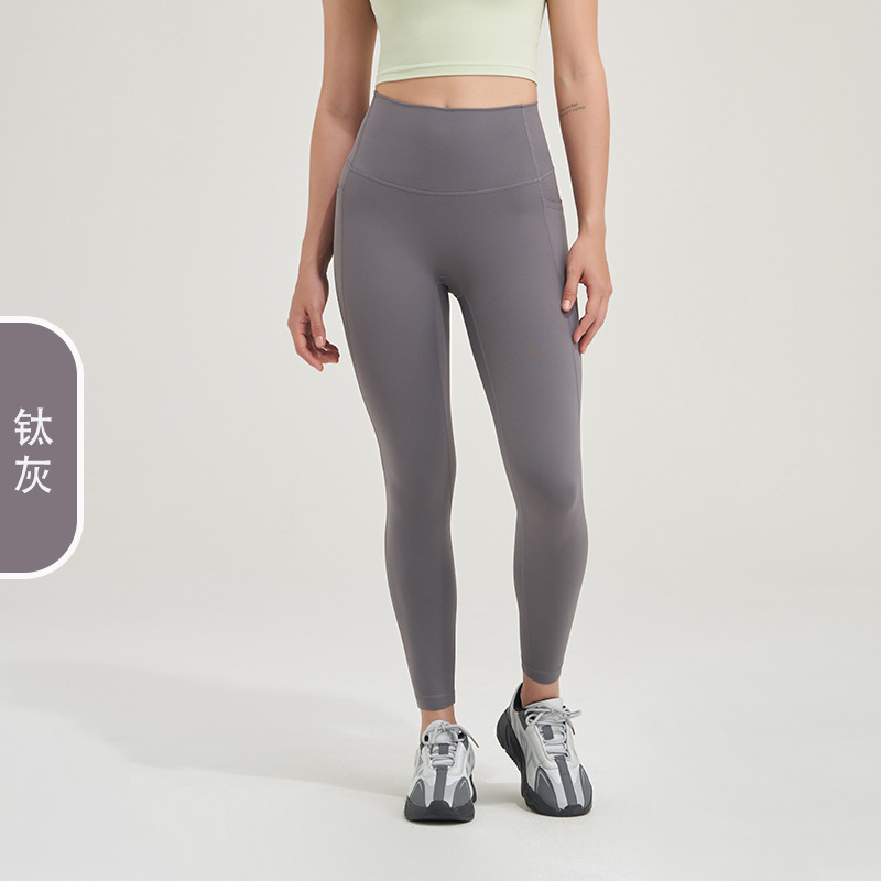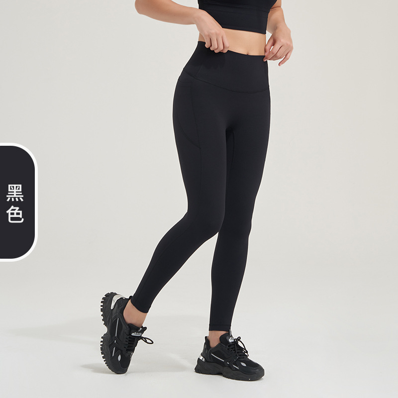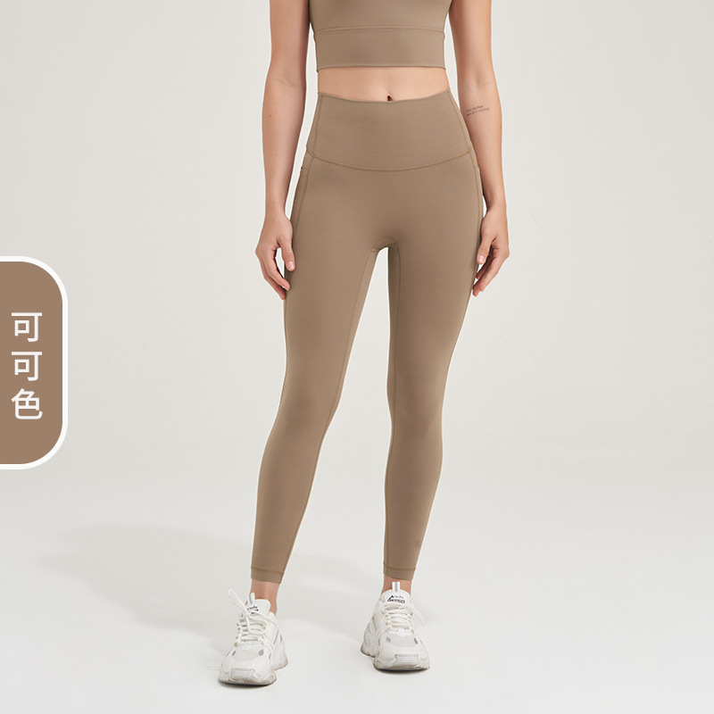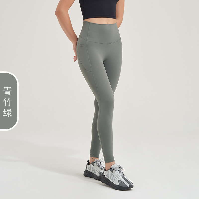 2023 포켓 요가 바지 여성의 알몸 감각 당황 없음 라인 하이 웨이스트 엉덩이 리프팅 피트니스 스포츠 타이트 팬츠 복숭아 바지