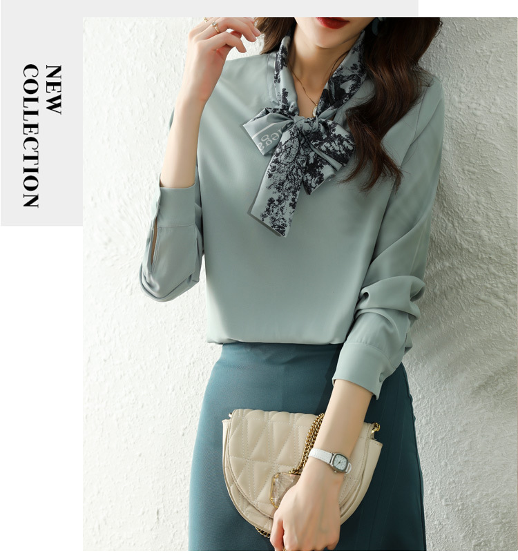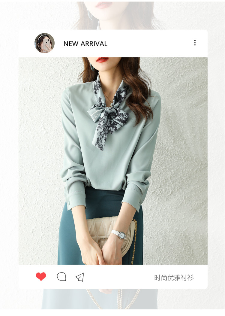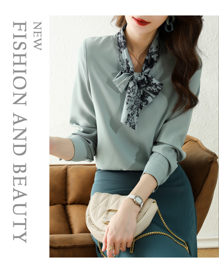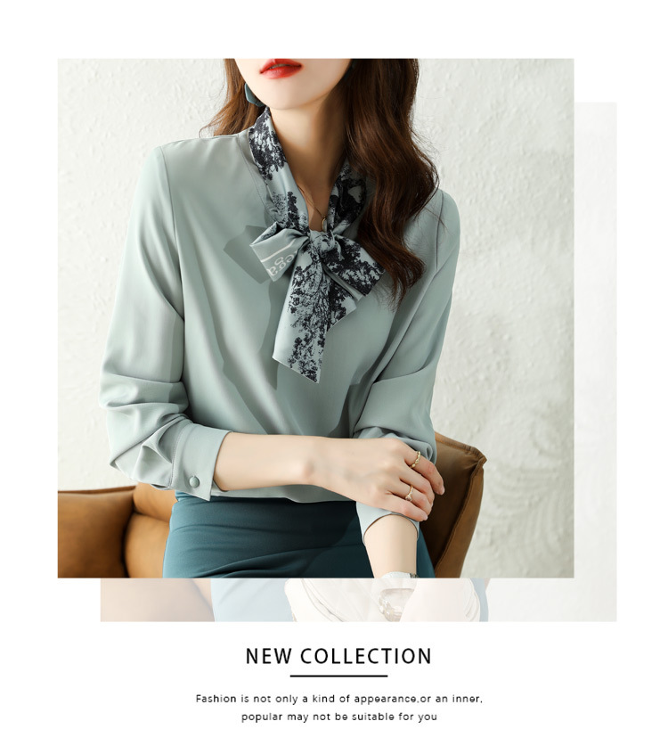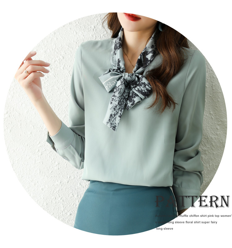 우아한 쉬폰 셔츠 여성의 디자인 감각 홍콩 스타일 틈새 가벼운 성숙한 셔츠 이른 가을 2022 새로운 긴 소매 셔츠스토어 가기