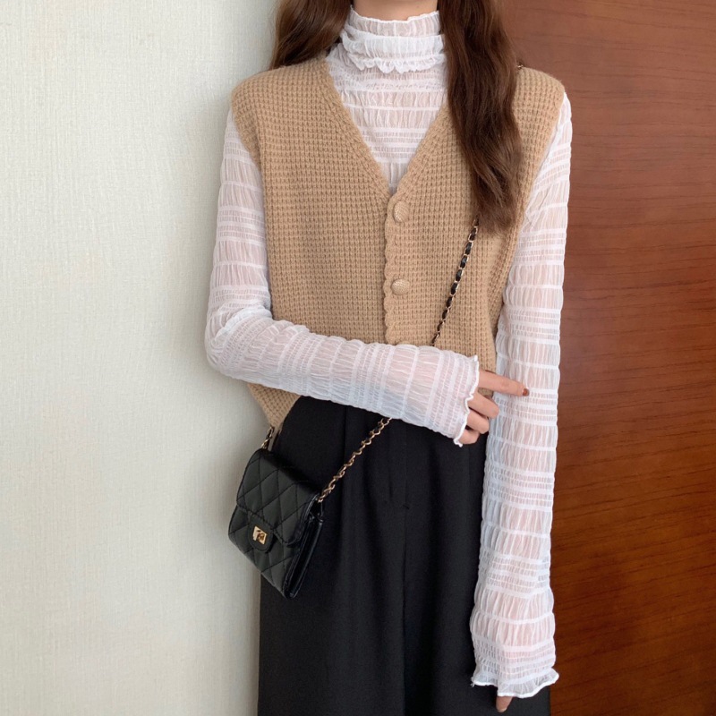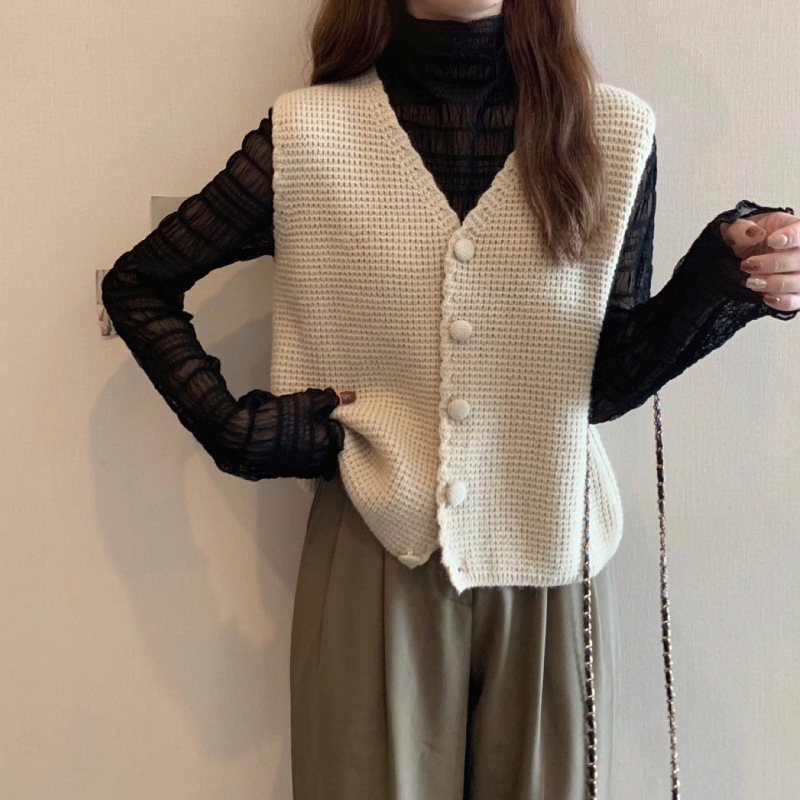 재고 봄과 가을 새로운 조끼 여자의 새로운 울 작은 조끼 쌓인 외부 니트 조끼 여자의 겨울 겉옷스토어 가기