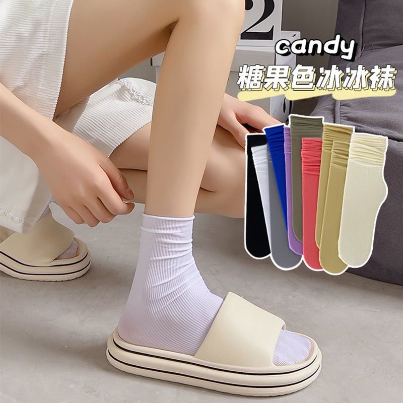 봄과 가을 일본 벨벳 스택 한국식 미드 배럴 인 긴 여성용 양말 여성용 단색 유행 아이스 양말