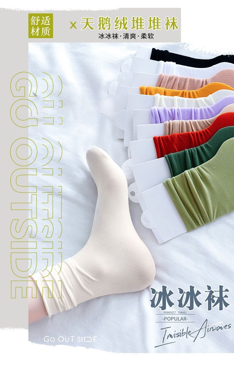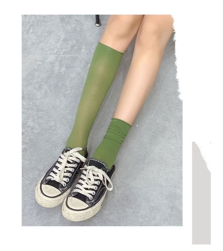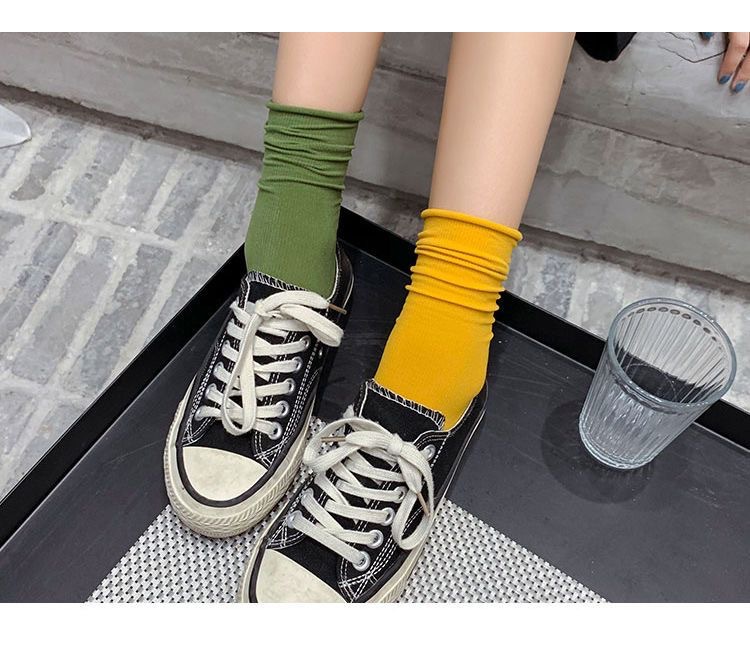 봄과 가을 일본 벨벳 스택 한국식 미드 배럴 인 긴 여성용 양말 여성용 단색 유행 아이스 양말스토어 가기