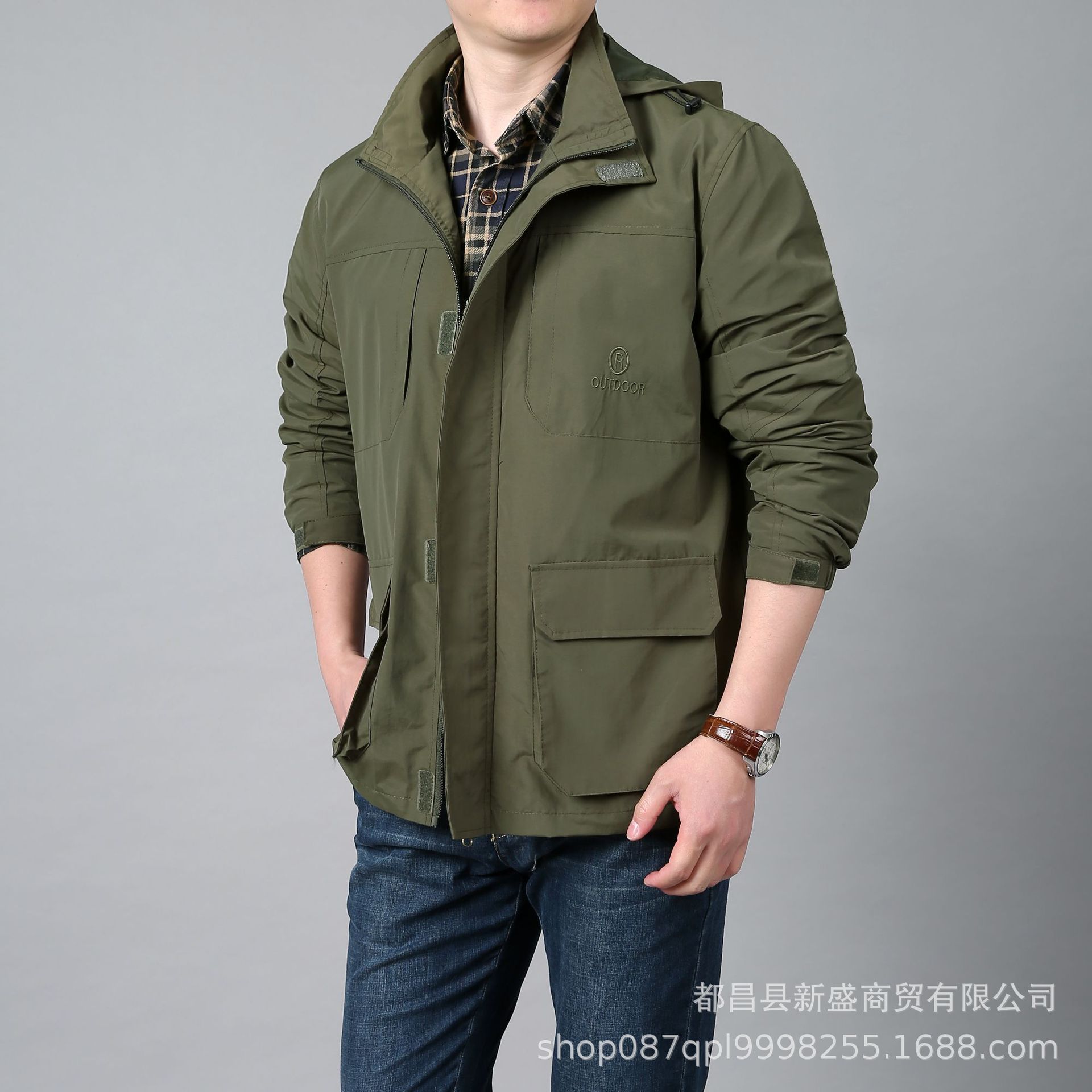 남성 봄과 가을 새로운 도착 코트 야외 느슨한 방풍 재킷 캐주얼 카디건 멀티 포켓 후드 자켓스토어 가기