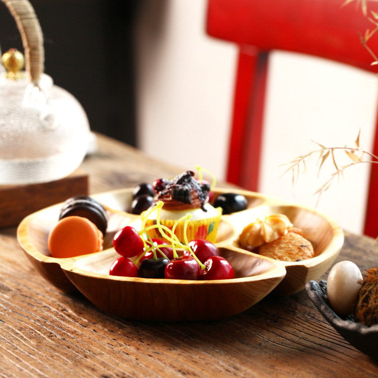 로그 수제 스낵 플레이트 분리 된 과일 플레이트 라운드 대형 다목적 저장 플레이트 자연 스타일 목재 가정용 식기