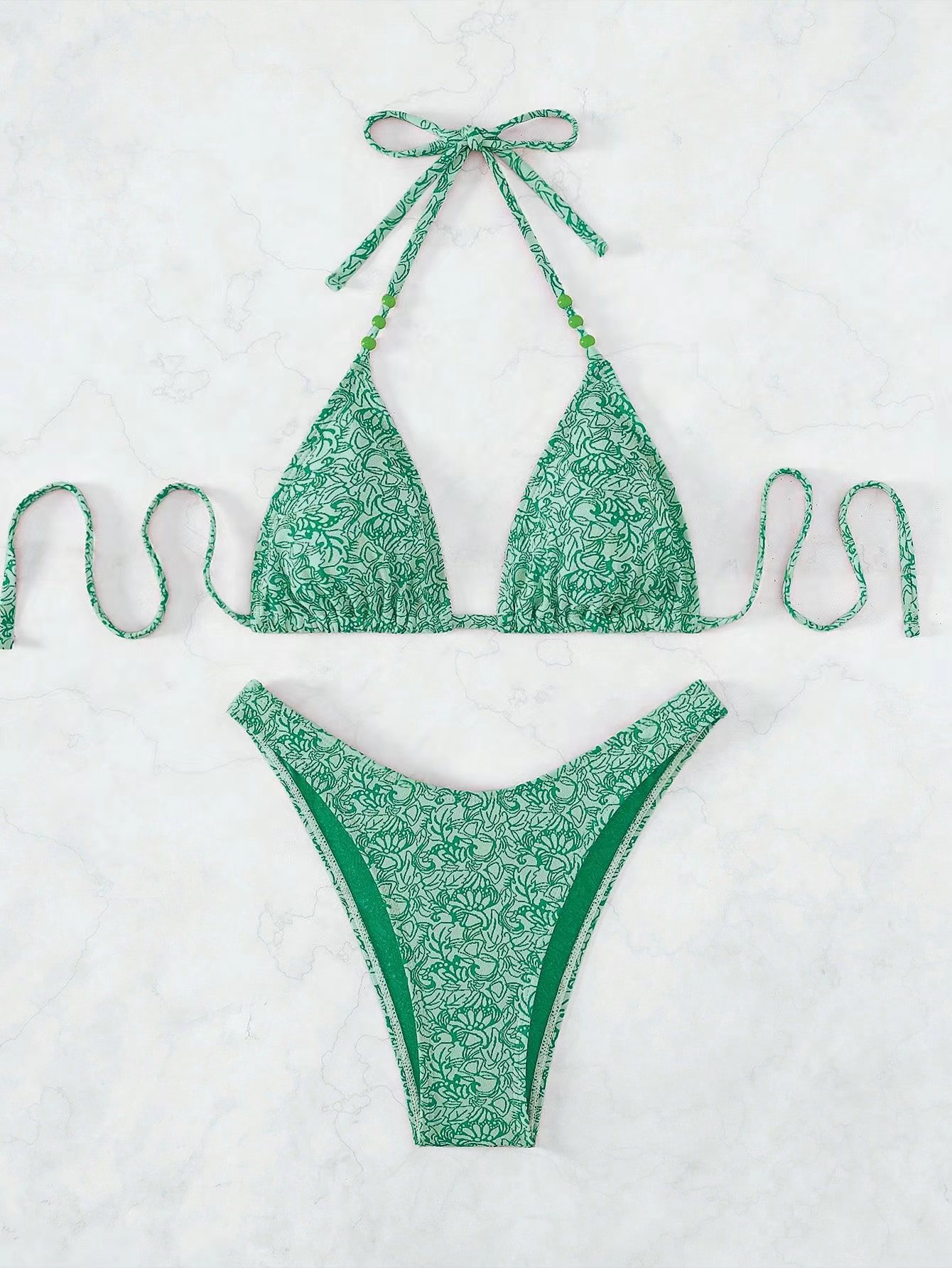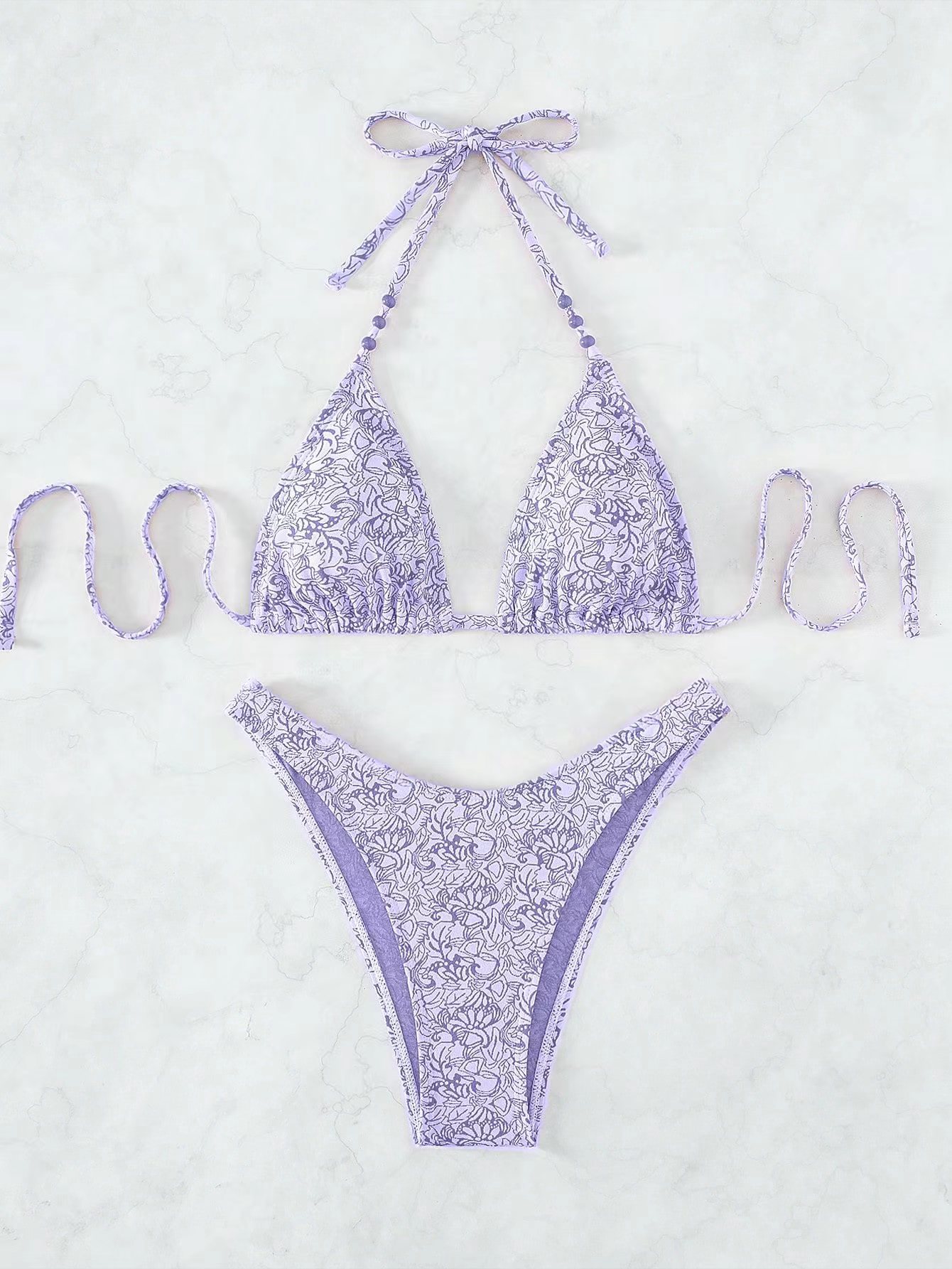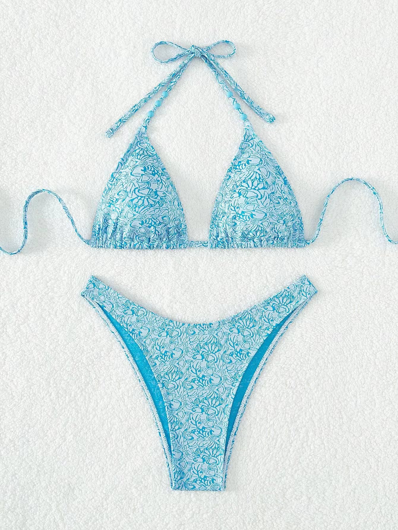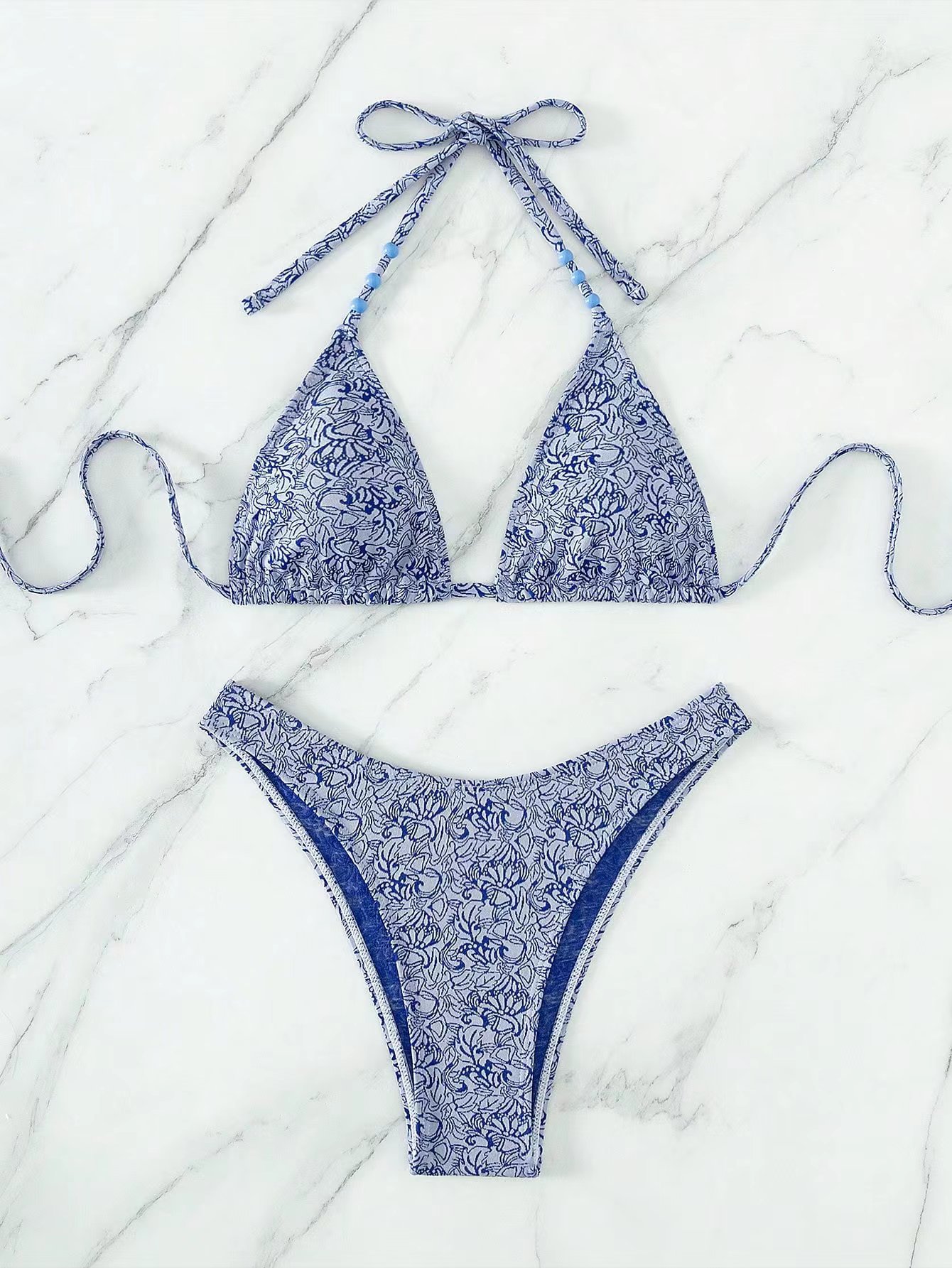 비키니 유럽 및 미국 수출 ins 섹시한 투피스 아마존 알리익스프레스 재고 비키니 끈 목걸이 수영복