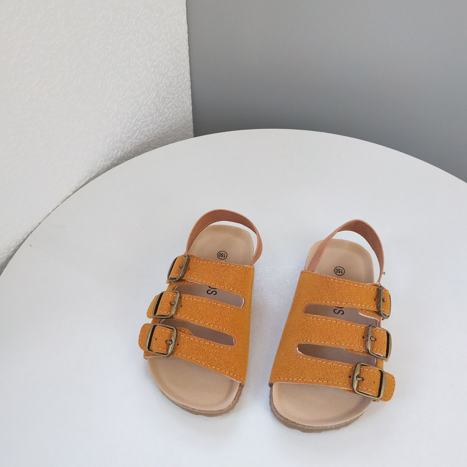 2025 봄 여름 신상 한국 스타일 INS 스타일 아동 로마 샌들 남녀 공용 나무 오픈토 심플 스타일 비치 슈즈