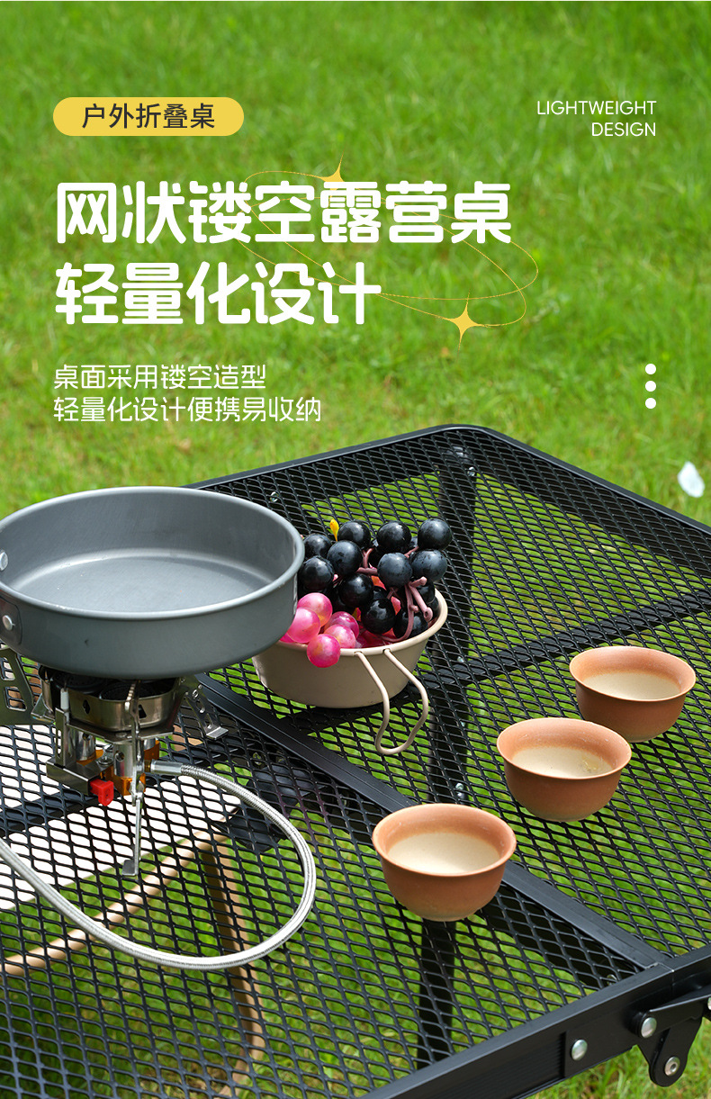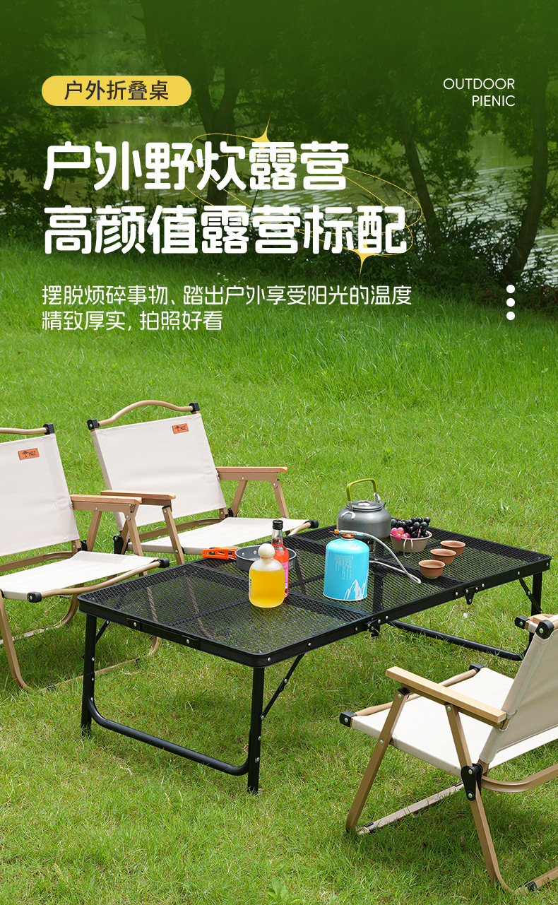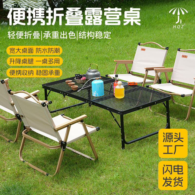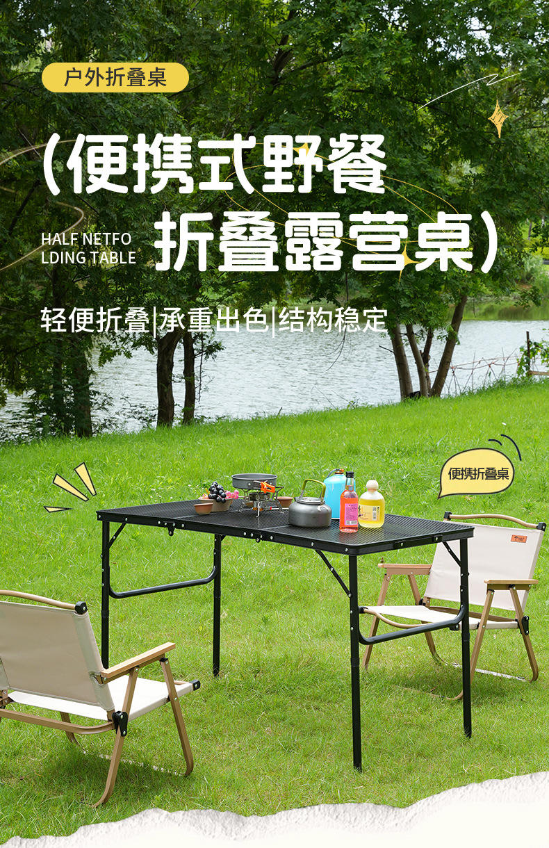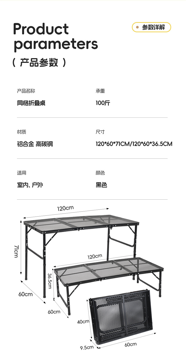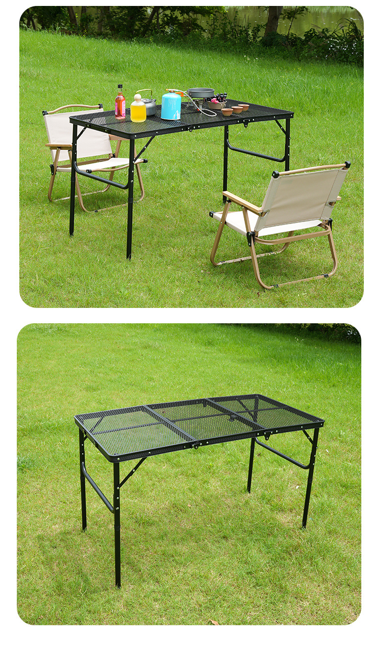 야외 접이식 테이블 휴대용 캠핑 고가 스토리지 랙 캠핑 바베큐 테이블 피크닉 식탁 머리카락을 생성하기위한 3 중 그물 테이블