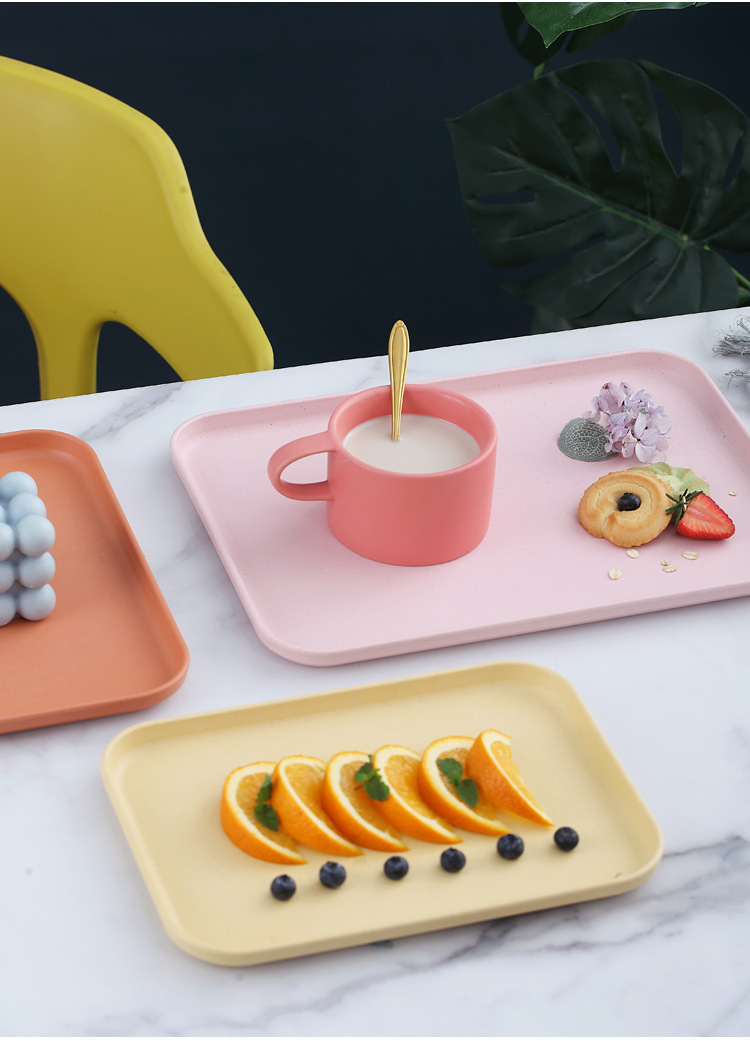 밀 밀짚 접시 직사각형 트레이 케이크 접시 가정용 접시 과일 접시 호텔 레스토랑 서빙 트레이 티 트레이