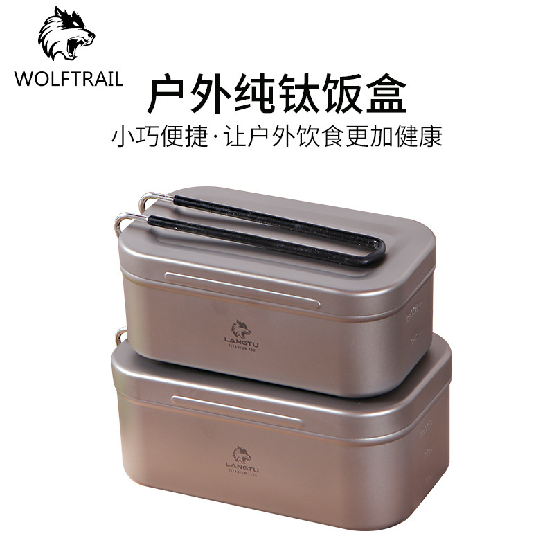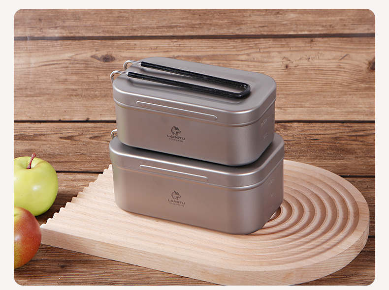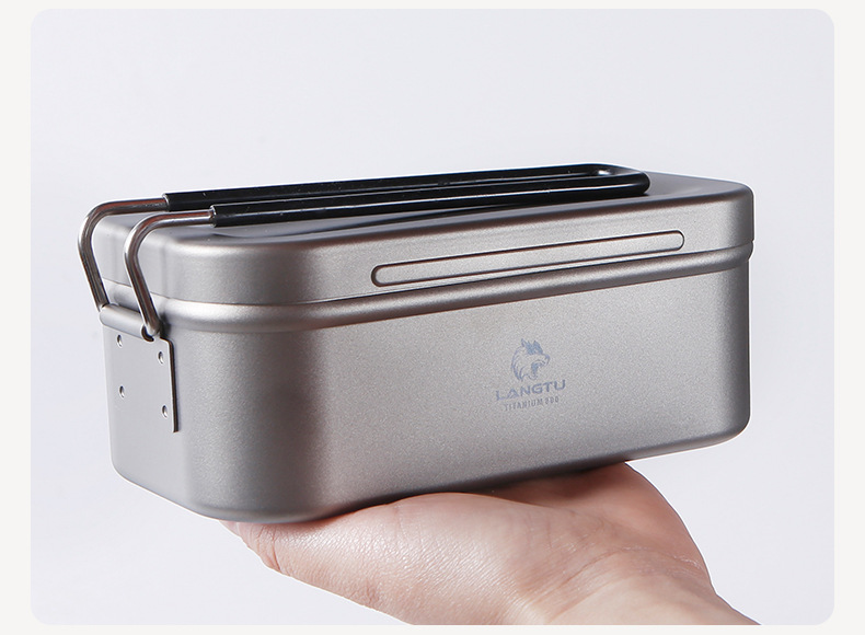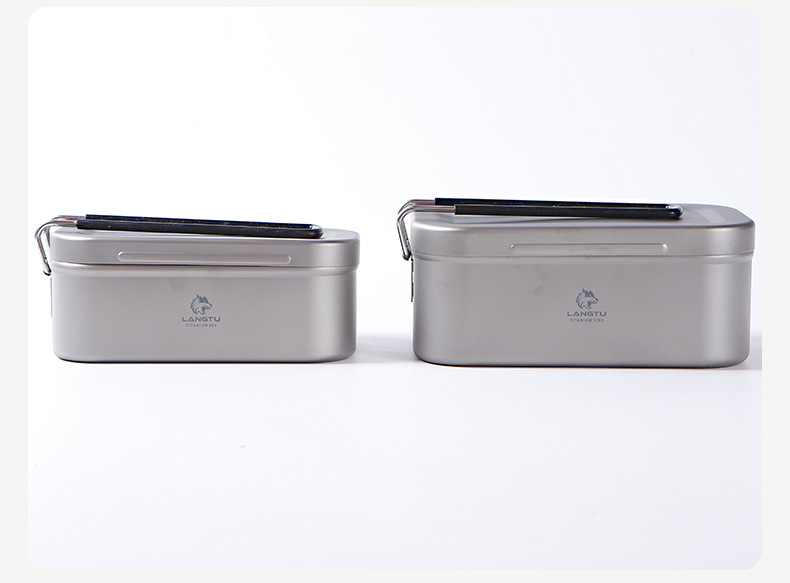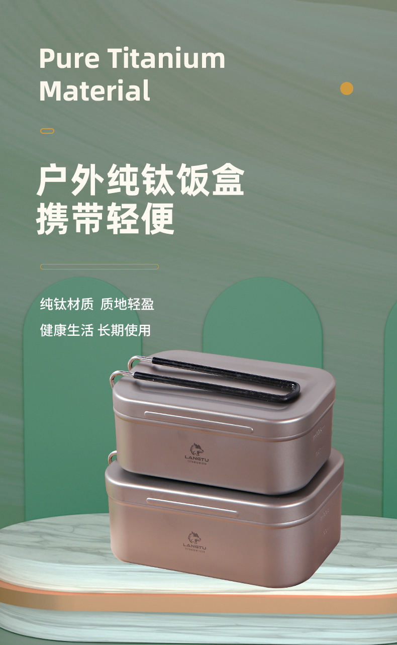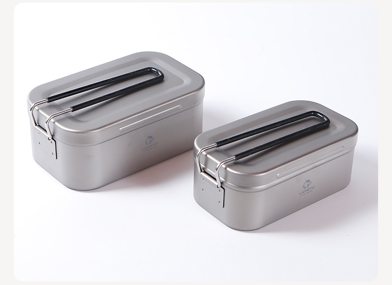 야외 순수 티타늄 도시락 밀폐 캠핑 도시락 등산 캠핑 휴대용 접이식 사각 피크닉 도시락 식기