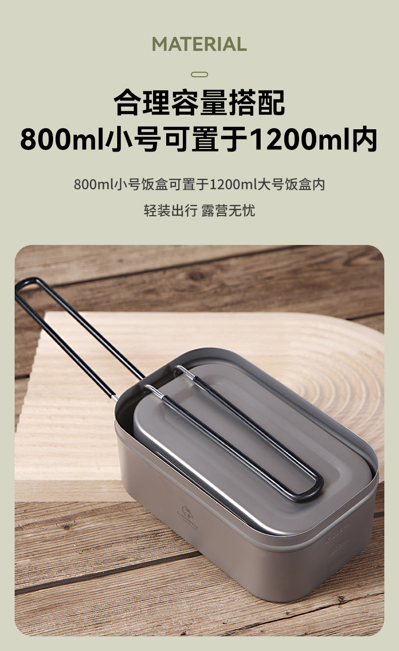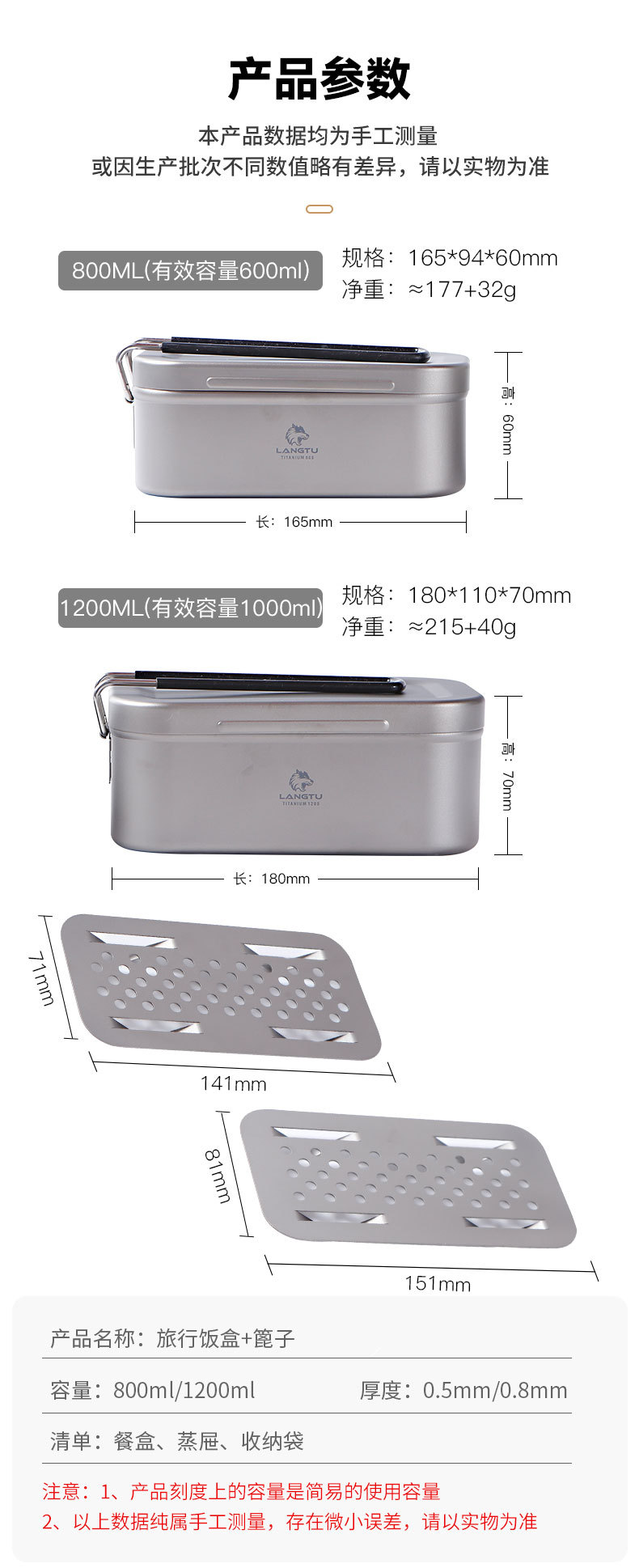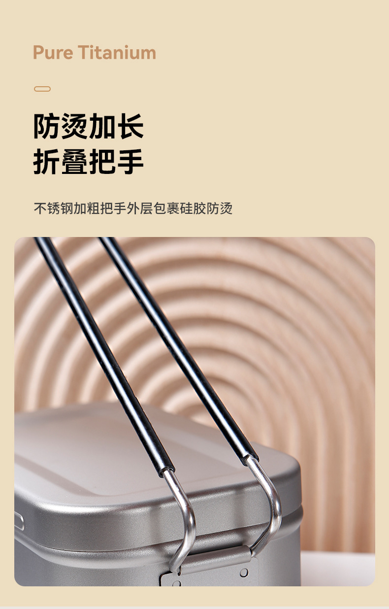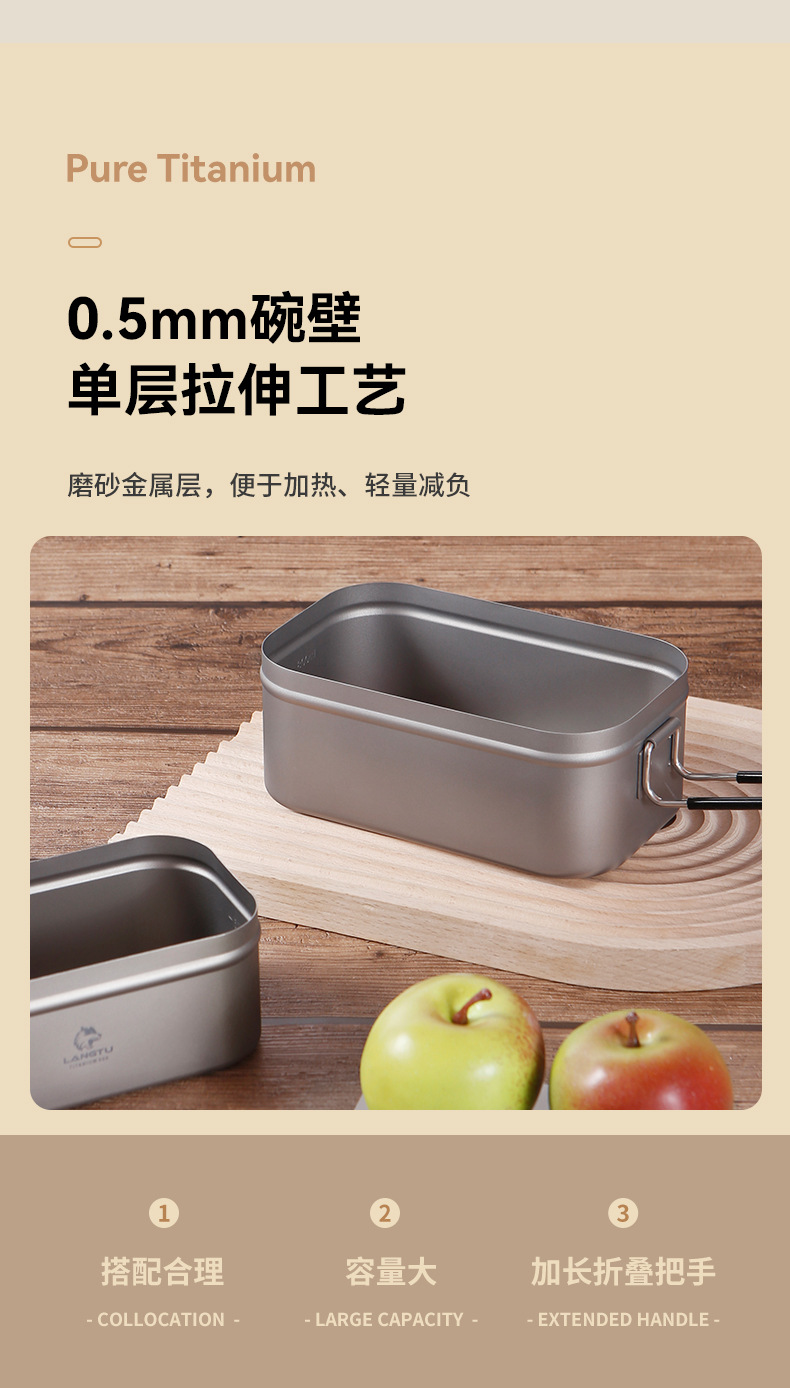 야외 순수 티타늄 도시락 밀폐 캠핑 도시락 등산 캠핑 휴대용 접이식 사각 피크닉 도시락 식기