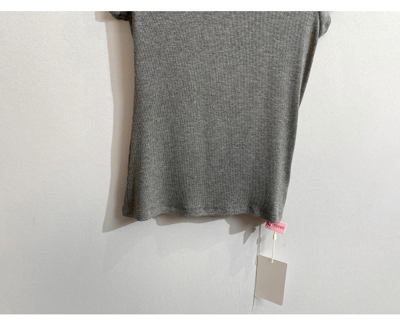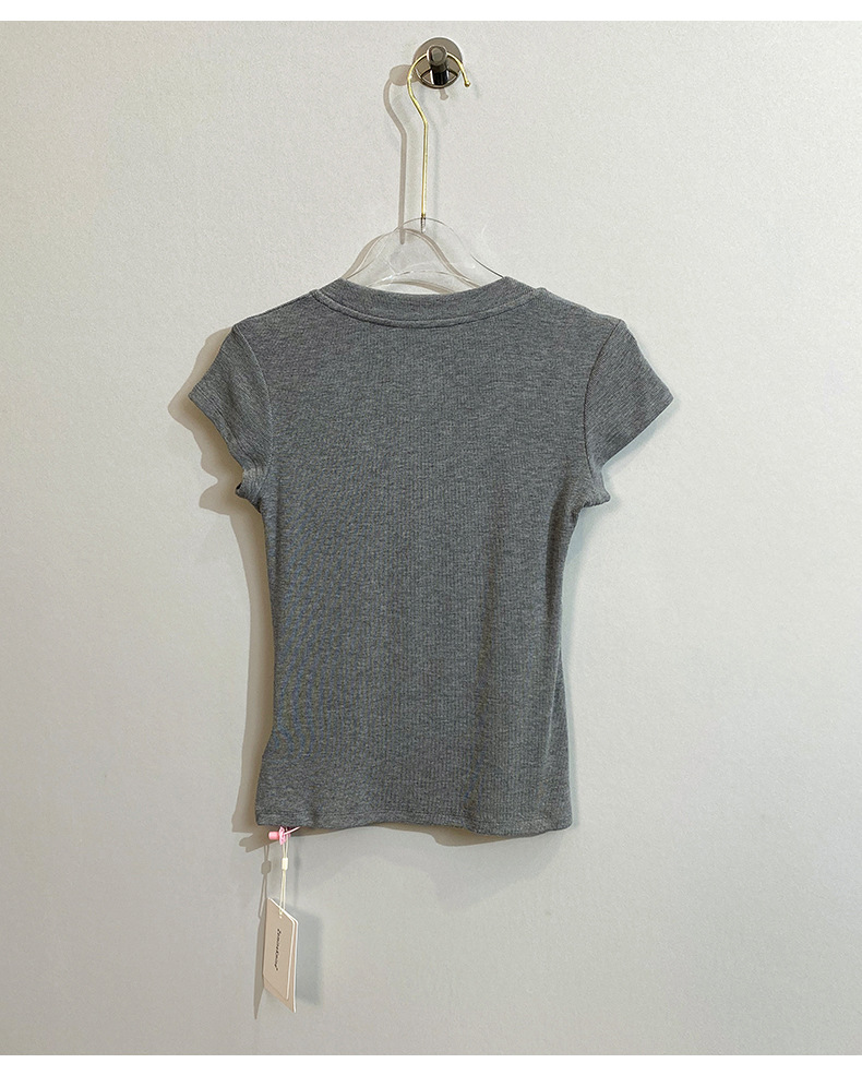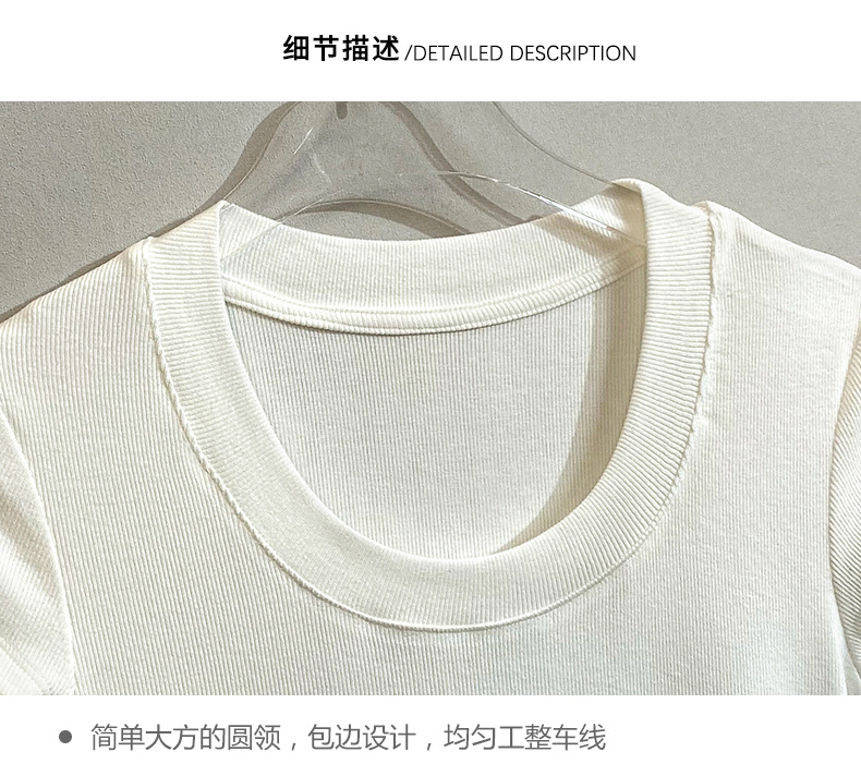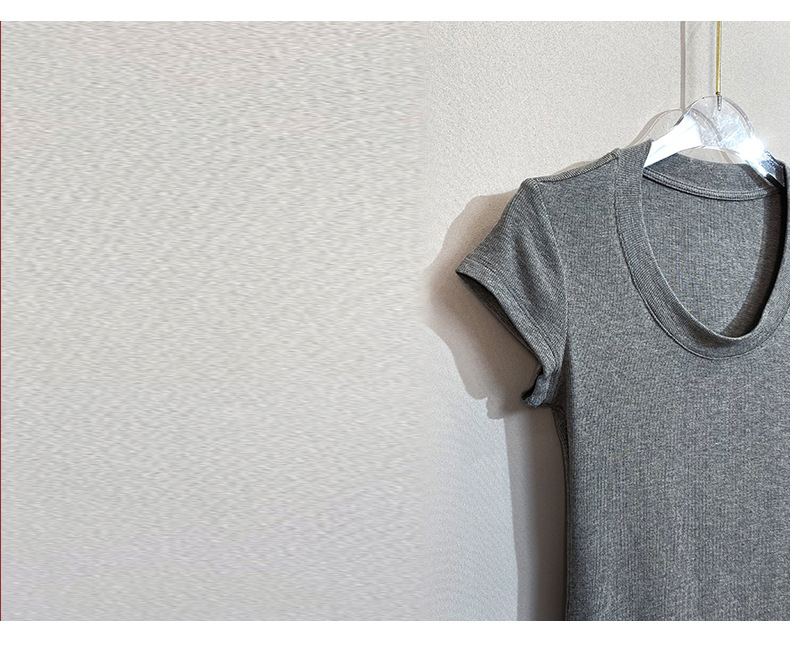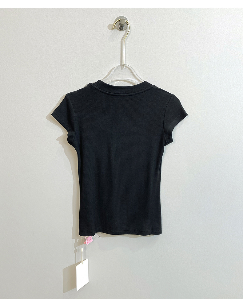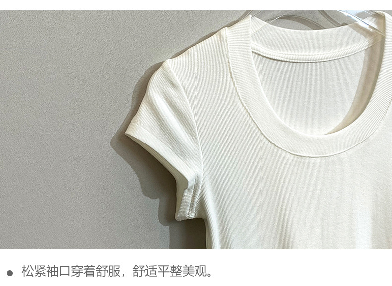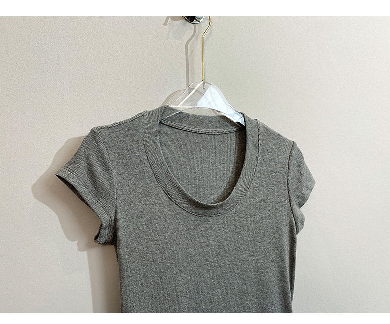 스팟 틈새 2024 여름 새 스타일 단순 솔리드 컬러 스레드 탄성 반팔 슬림 슬림 탑 티셔츠 여성용스토어 가기