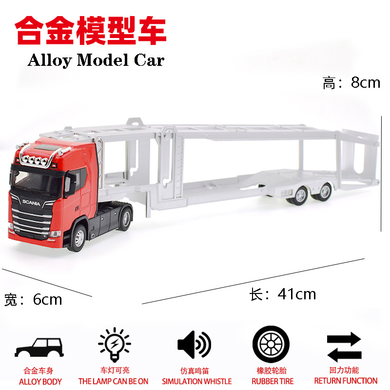 새로운 스칸디나비아 합금 컨테이너 자동차 모델 시뮬레이션 트랙터 세미 트레일러 더블 데크 트랜스포터 장난감스토어 가기