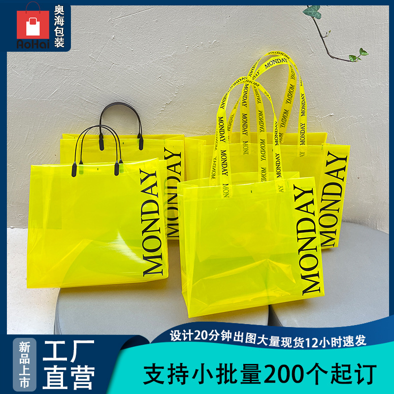 의류 매장 가방 고급 그물 레드 핸드백 플라스틱 로고 투명 선물 가방 pvc 핸드 백 도매
