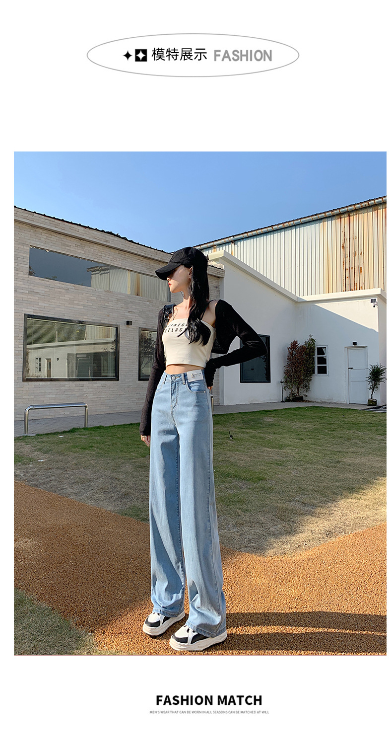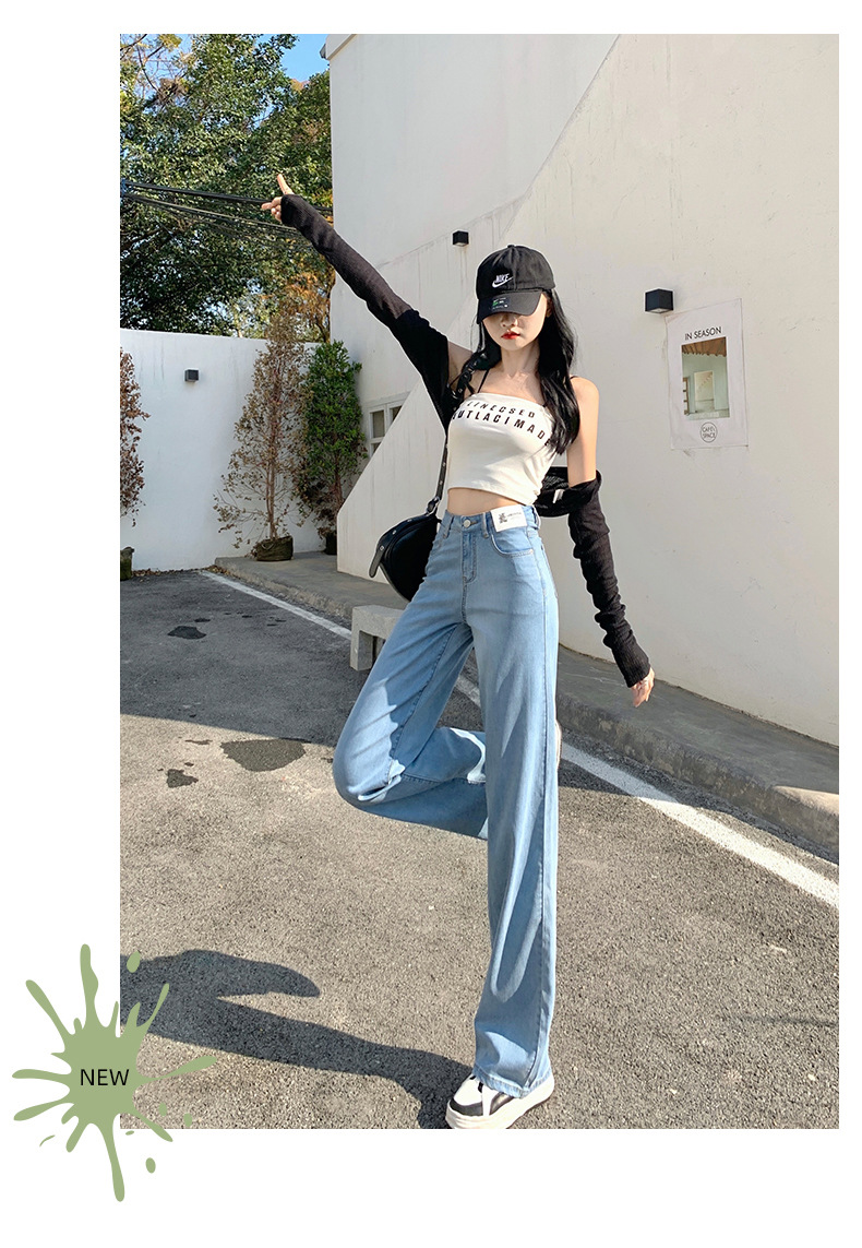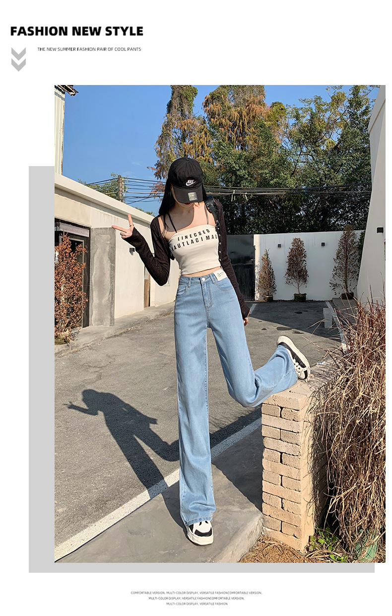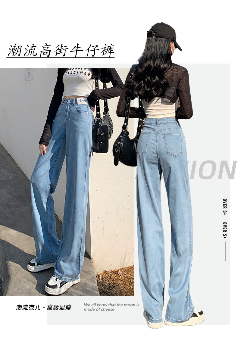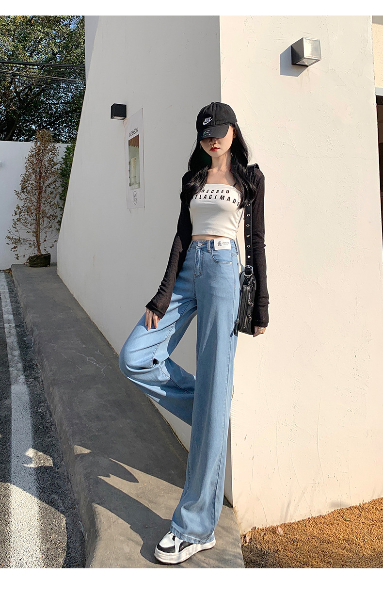 텐셀 청바지 여성용 여름 얇은 2024 새로운 슬림 스트레이트 하이 허리 아이스 실크 바닥 걸레 와이드 다리 바지스토어 가기