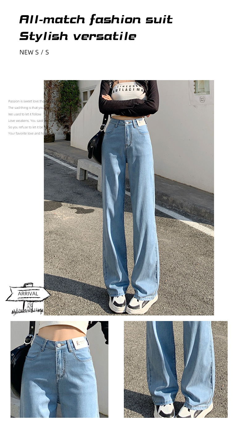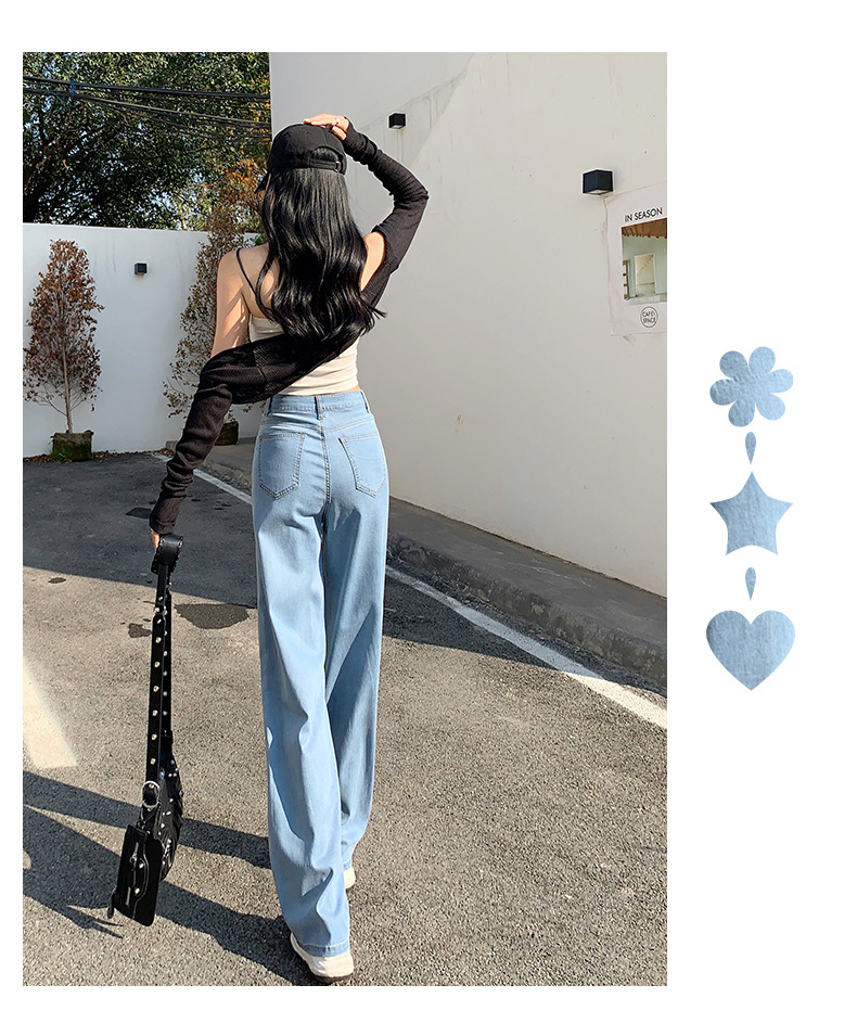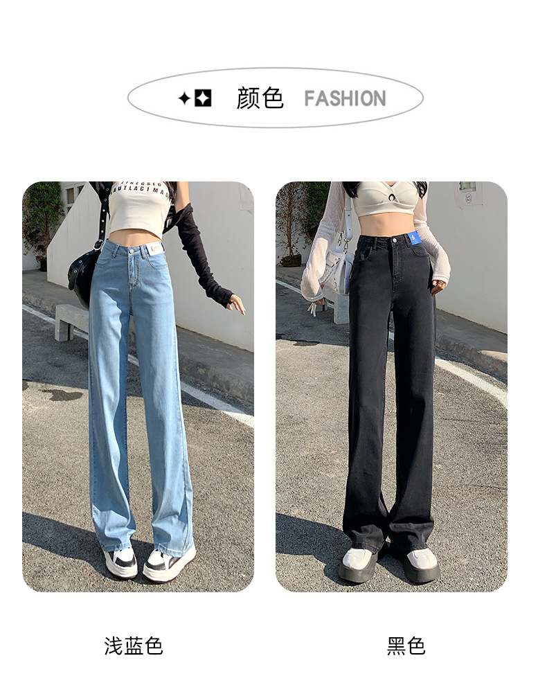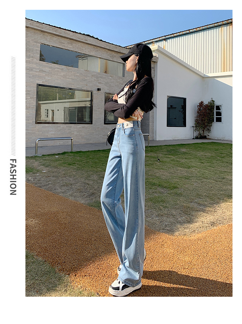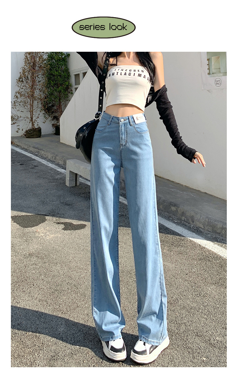 텐셀 청바지 여성용 여름 얇은 2024 새로운 슬림 스트레이트 하이 허리 아이스 실크 바닥 걸레 와이드 다리 바지스토어 가기