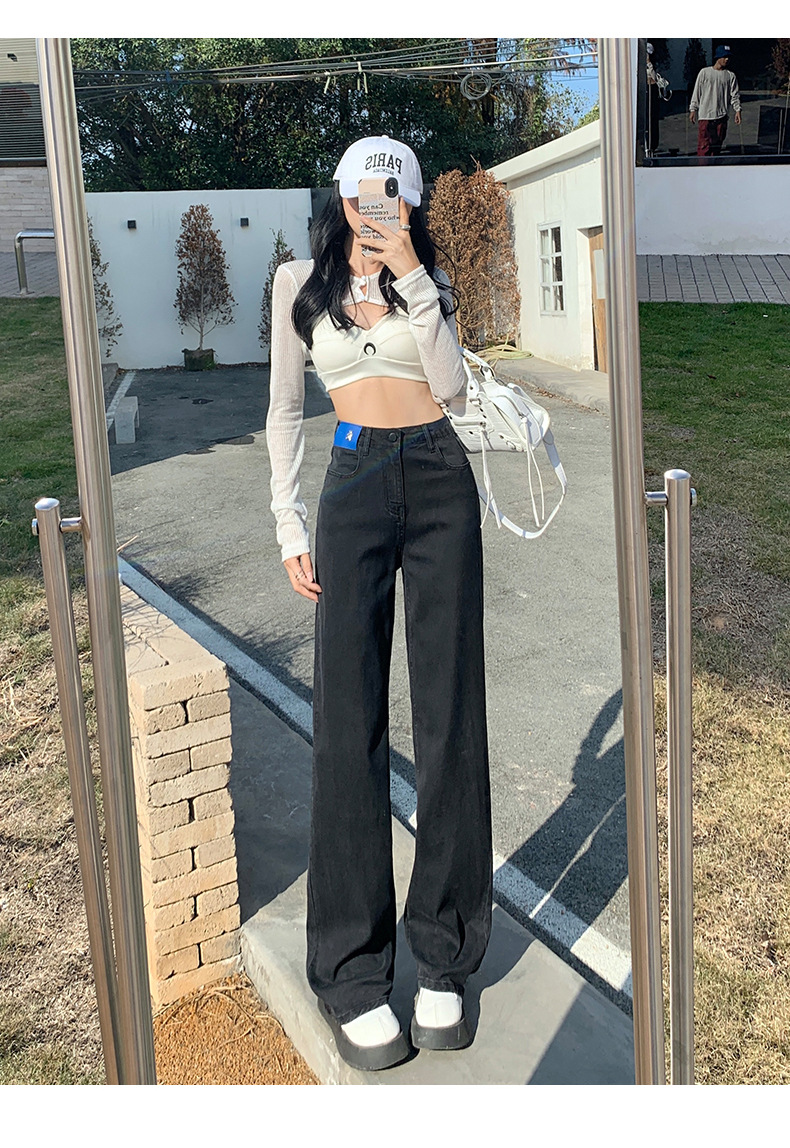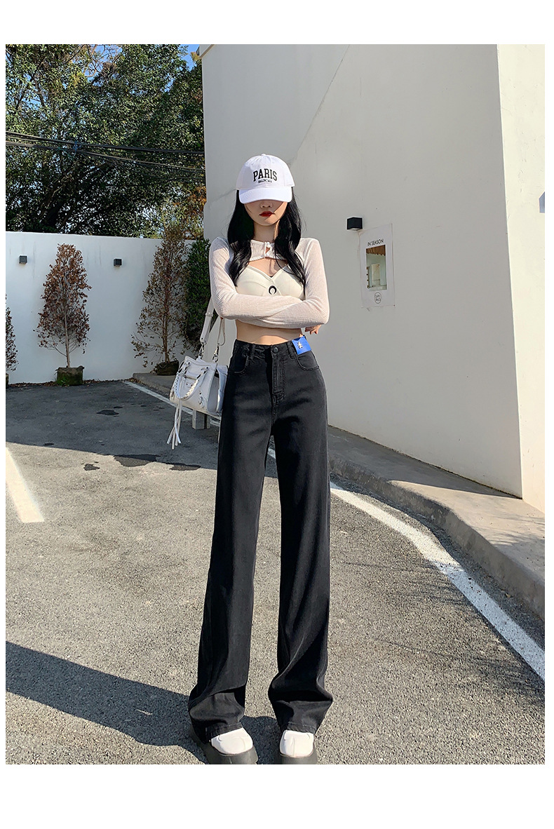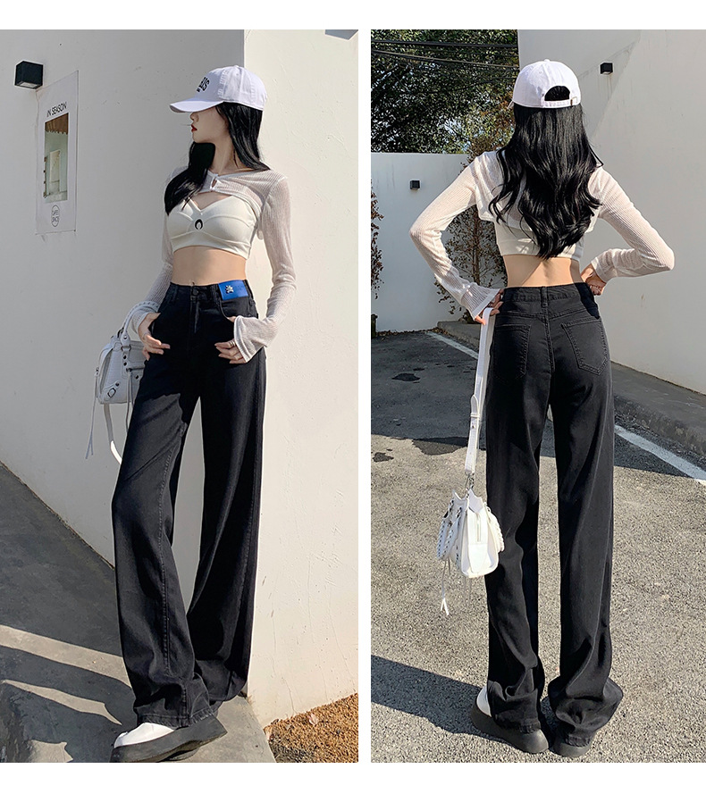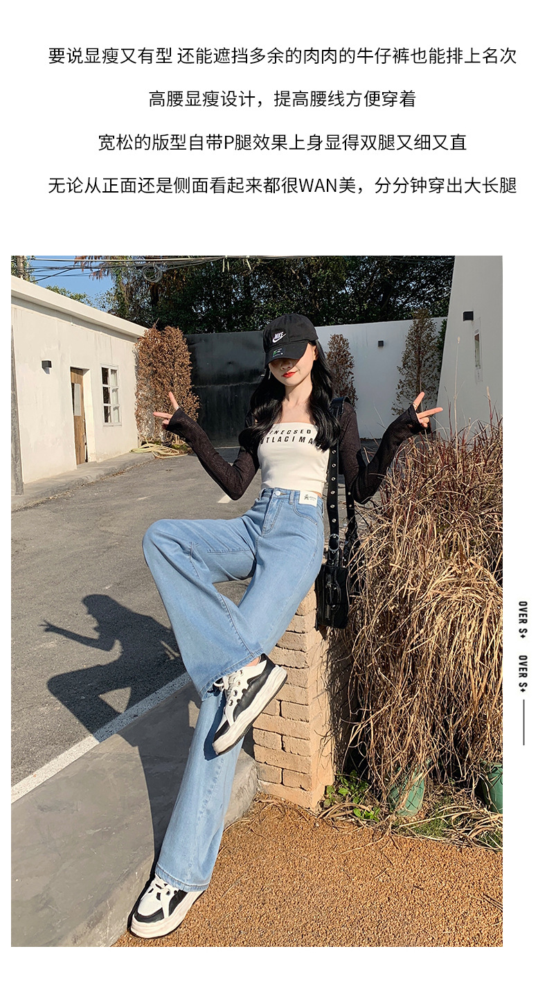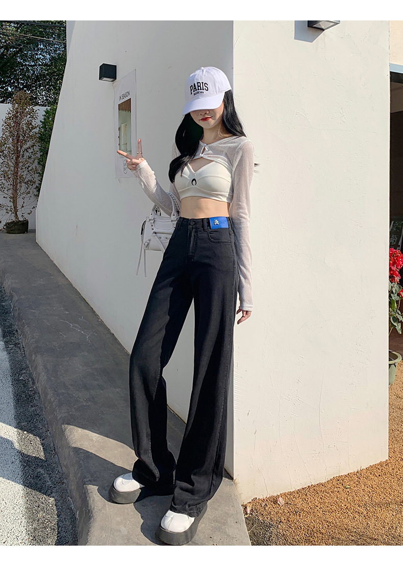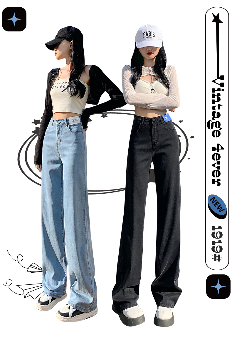 텐셀 청바지 여성용 여름 얇은 2024 새로운 슬림 스트레이트 하이 허리 아이스 실크 바닥 걸레 와이드 다리 바지스토어 가기