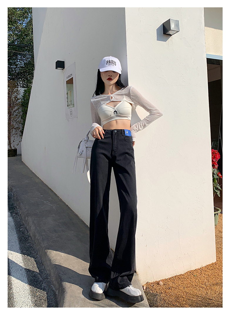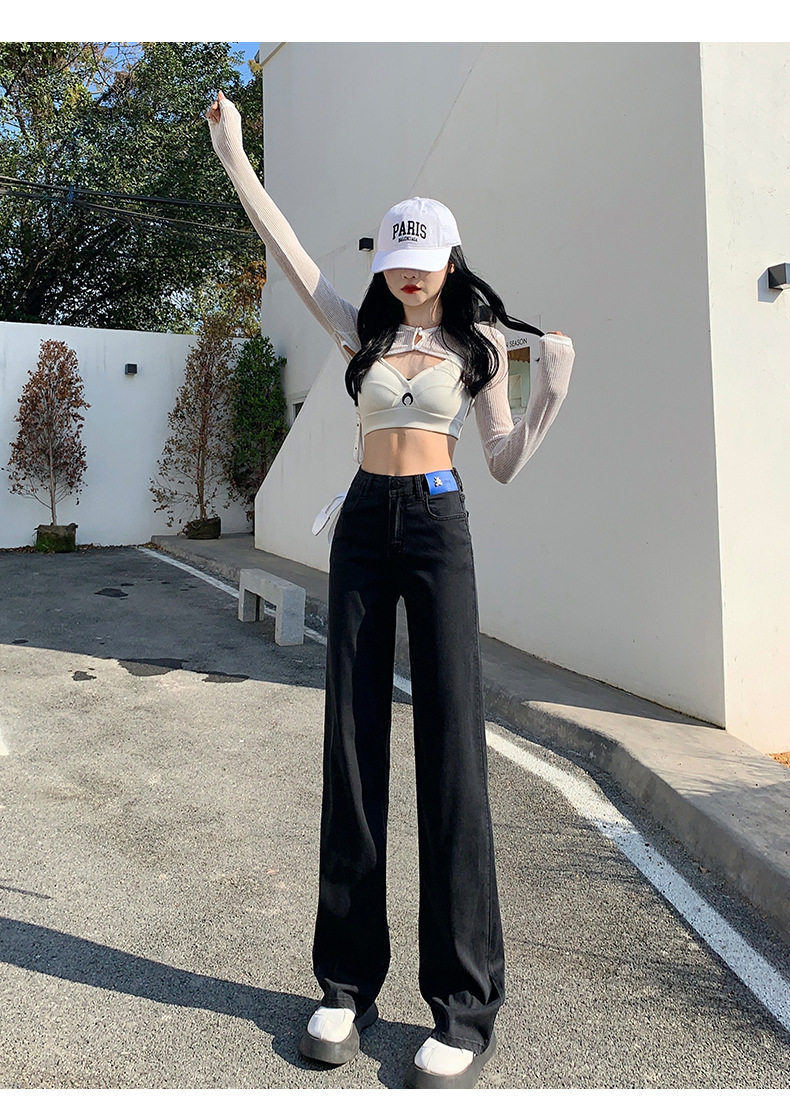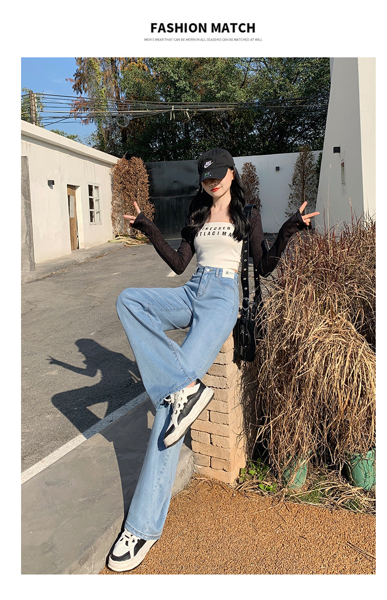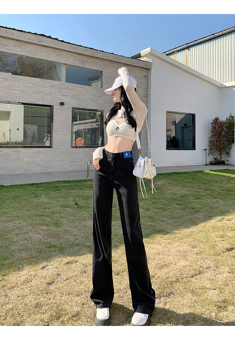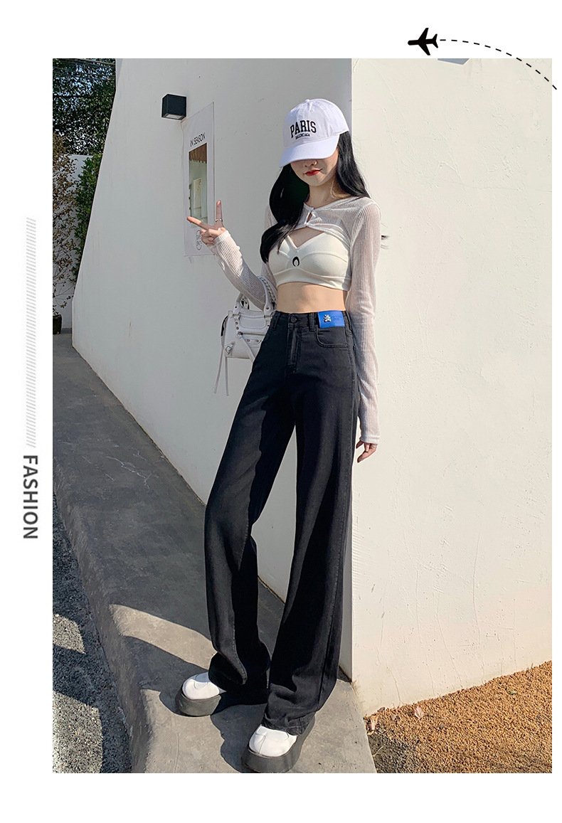 텐셀 청바지 여성용 여름 얇은 2024 새로운 슬림 스트레이트 하이 허리 아이스 실크 바닥 걸레 와이드 다리 바지스토어 가기