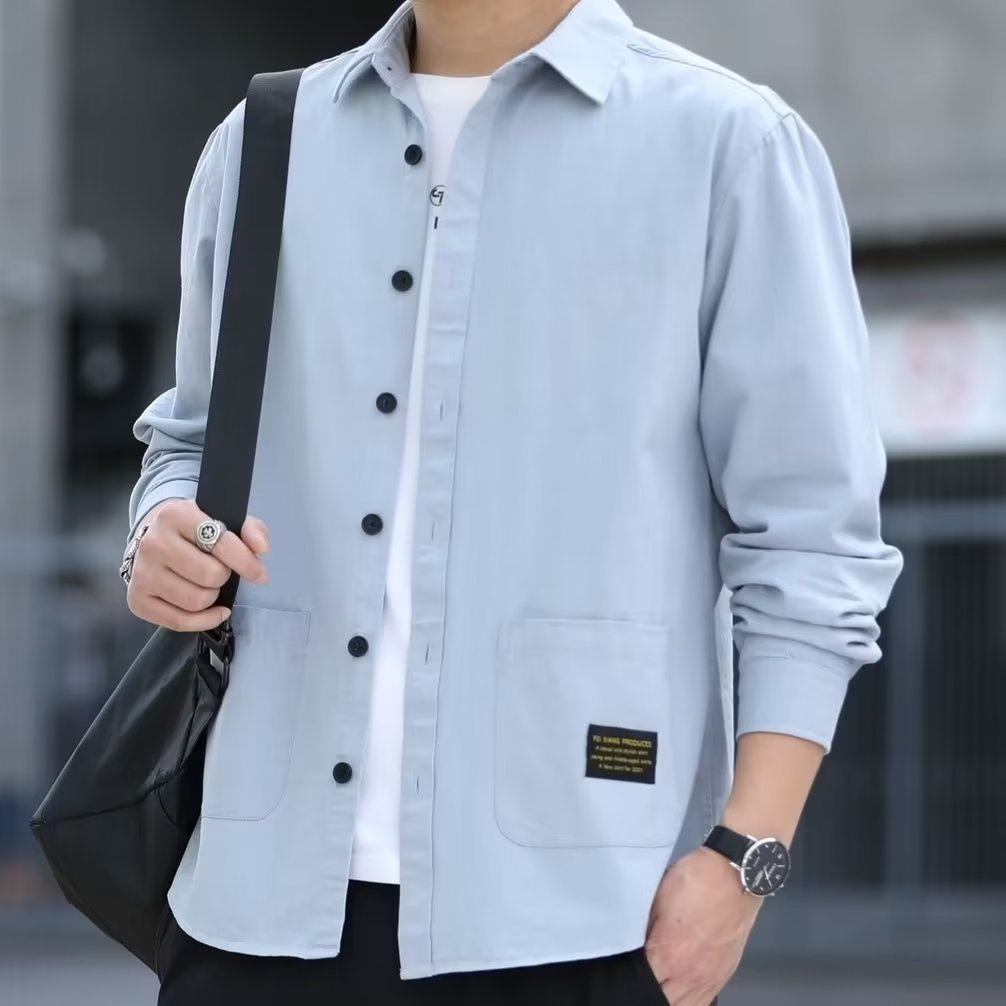 2024 봄/가을 워싱 코튼 남성 셔츠 긴팔 부드럽고 피부 친화적인 셔츠 루즈핏 대형 사이즈 남성용 아우터스토어 가기