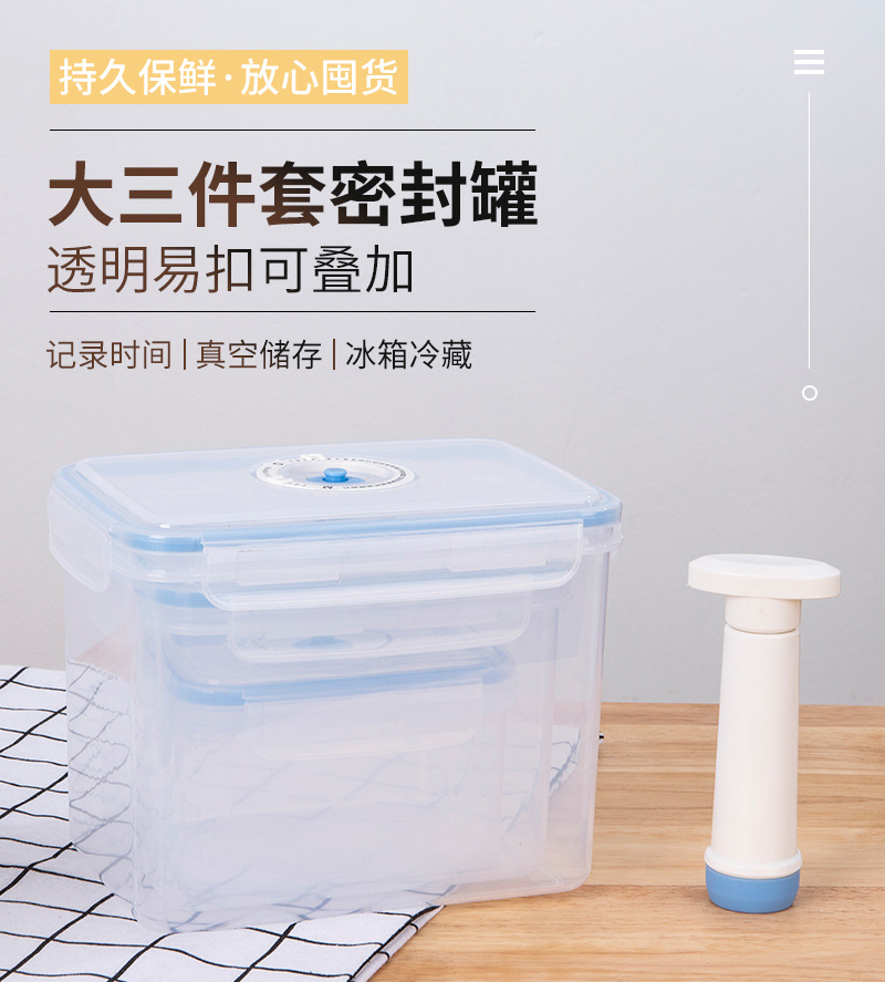 진공 크로노그래프 밀폐 항아리 식품 등급 플라스틱 보관함 사각 신선한 시리얼 밀봉 항아리 대형 3 종 세트스토어 가기