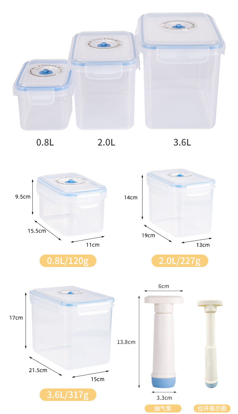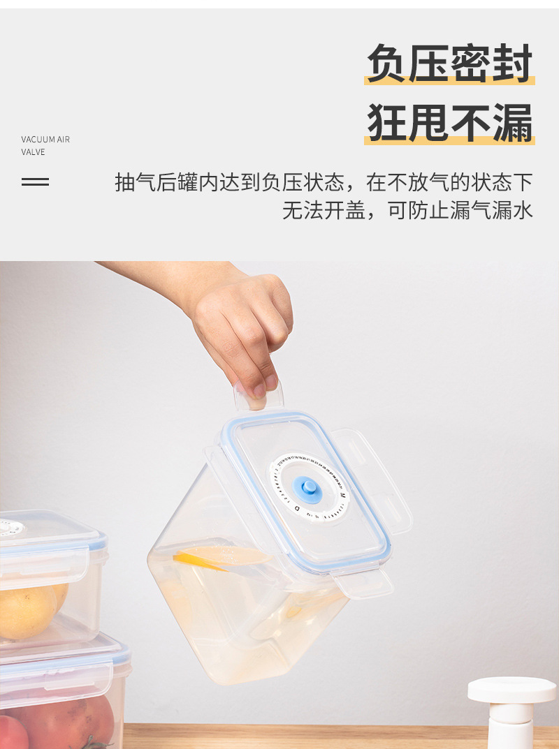 진공 크로노그래프 밀폐 항아리 식품 등급 플라스틱 보관함 사각 신선한 시리얼 밀봉 항아리 대형 3 종 세트