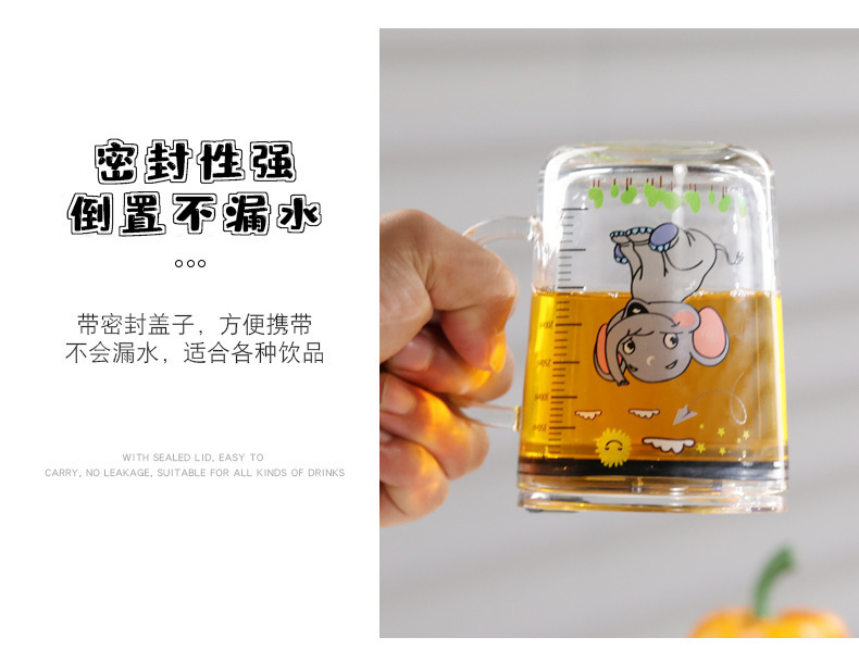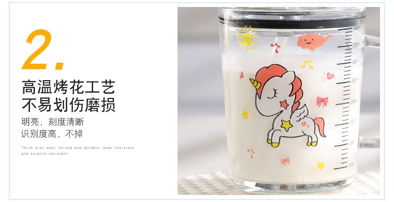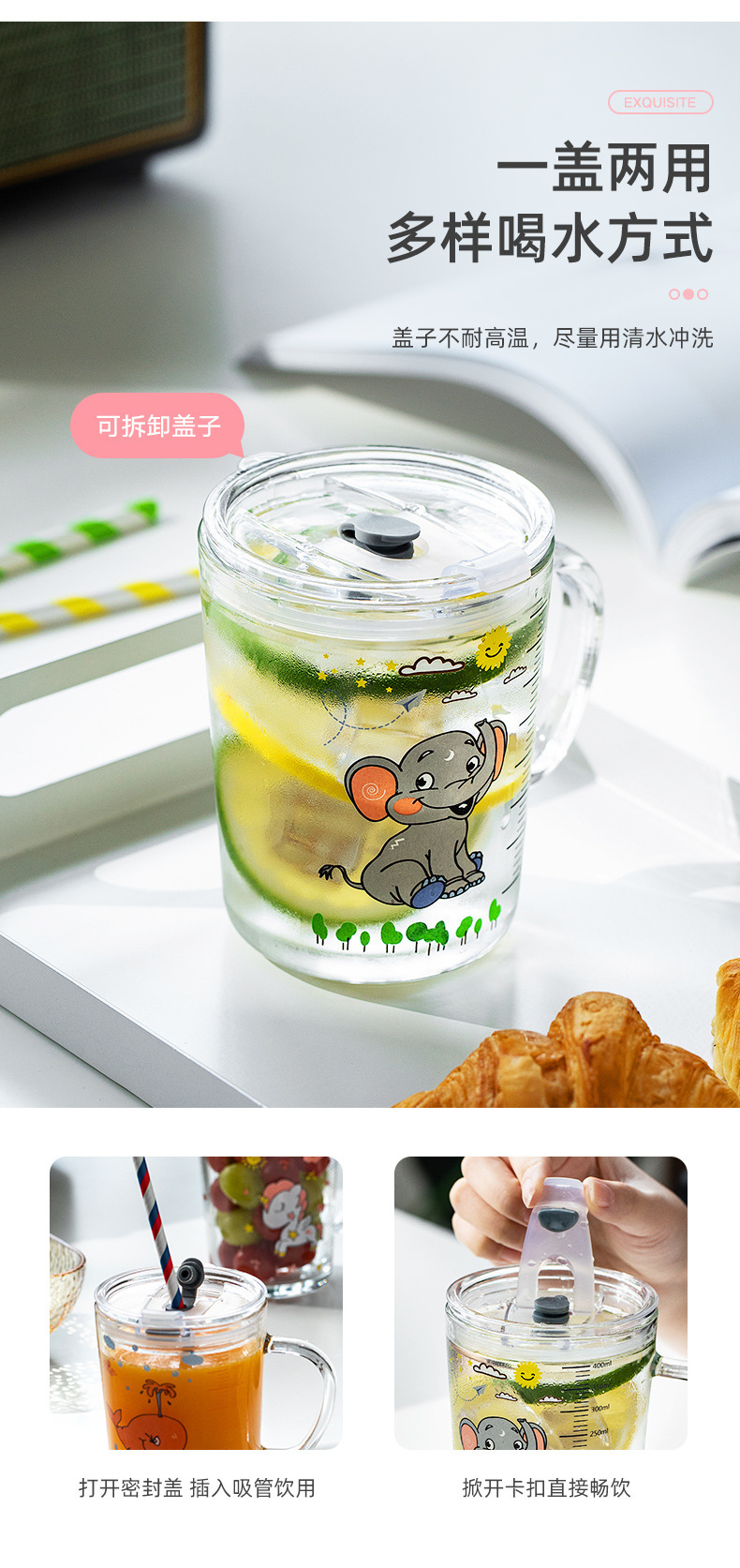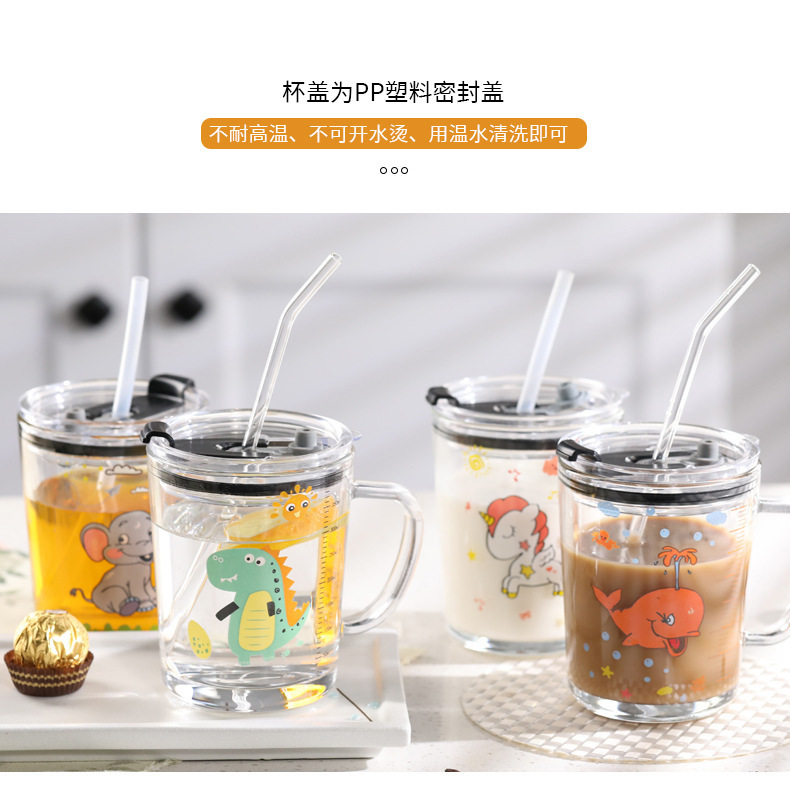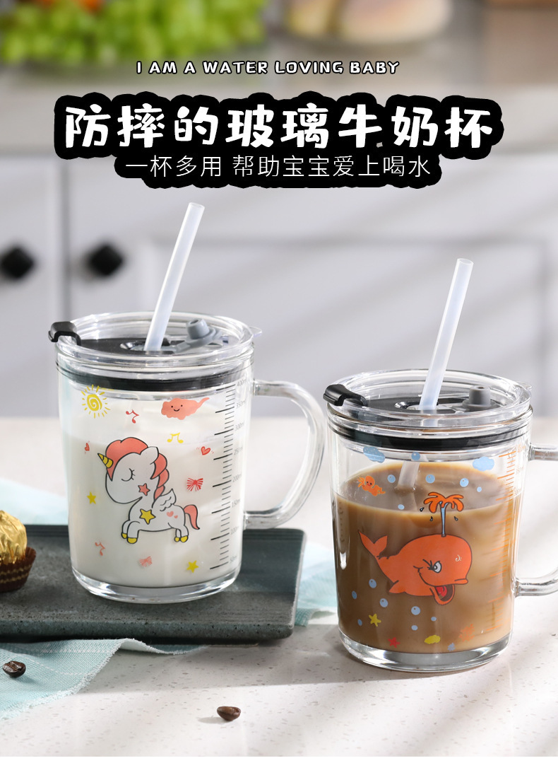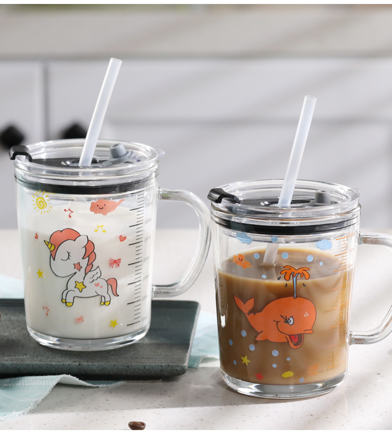학생 아침 식사 가정용 손잡이가있는 도매 어린이 졸업 물 컵 우유 컵 만화 유리 빨대 분유 컵스토어 가기