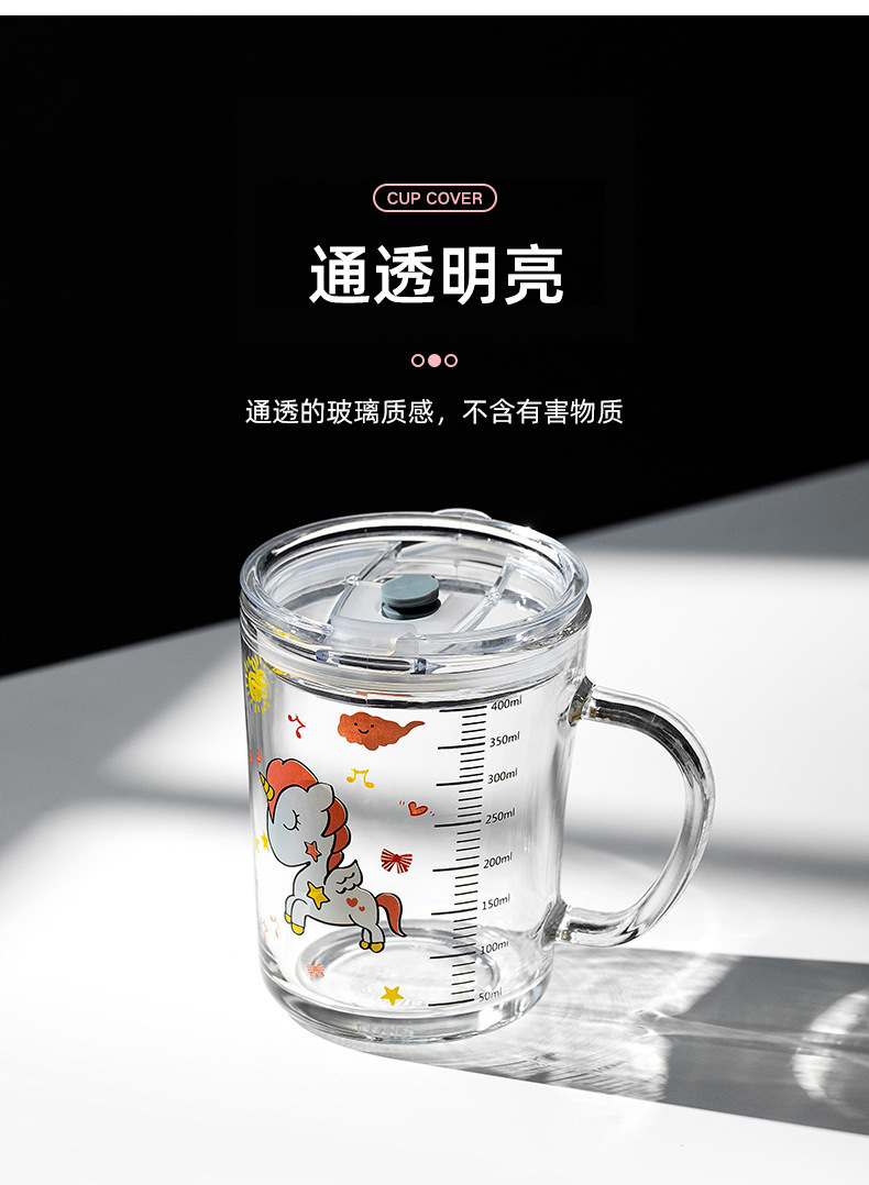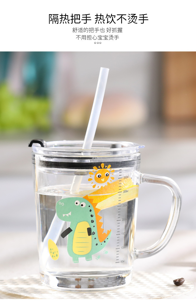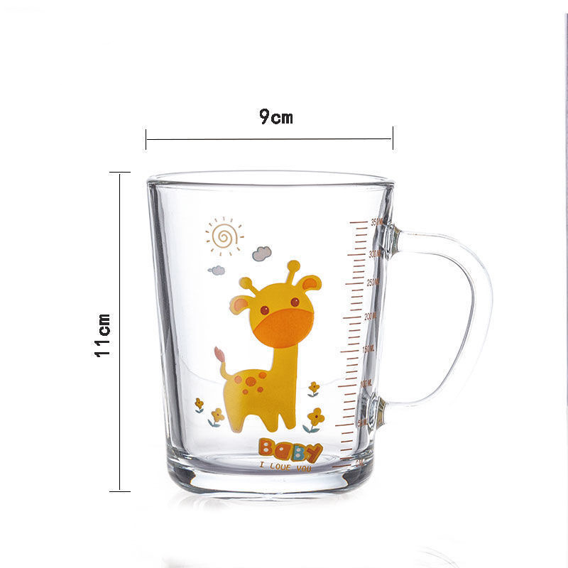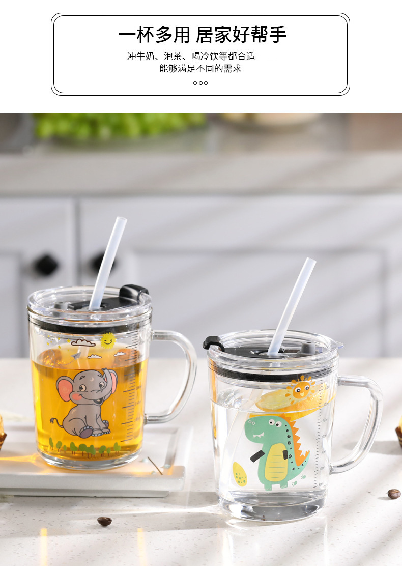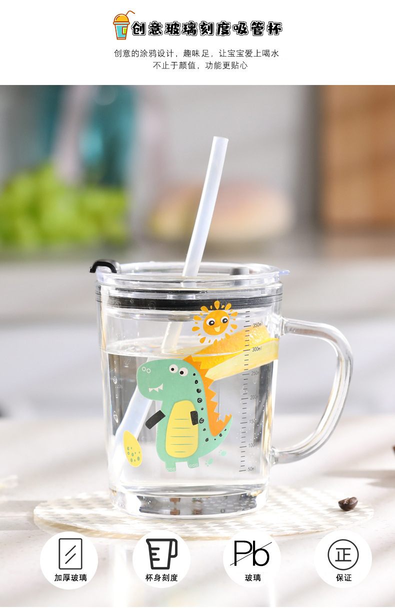 학생 아침 식사 가정용 손잡이가있는 도매 어린이 졸업 물 컵 우유 컵 만화 유리 빨대 분유 컵