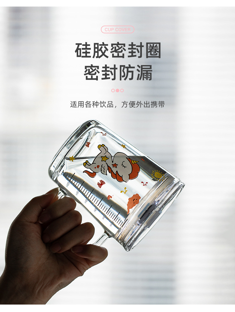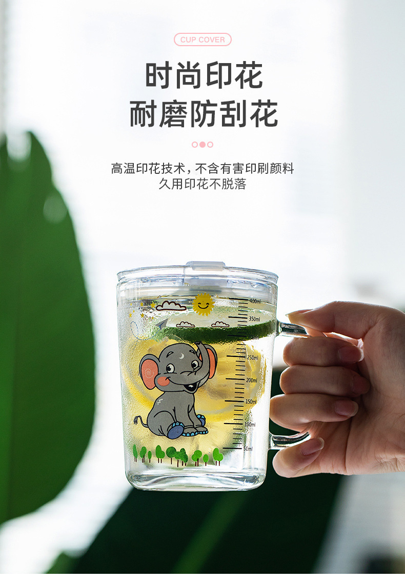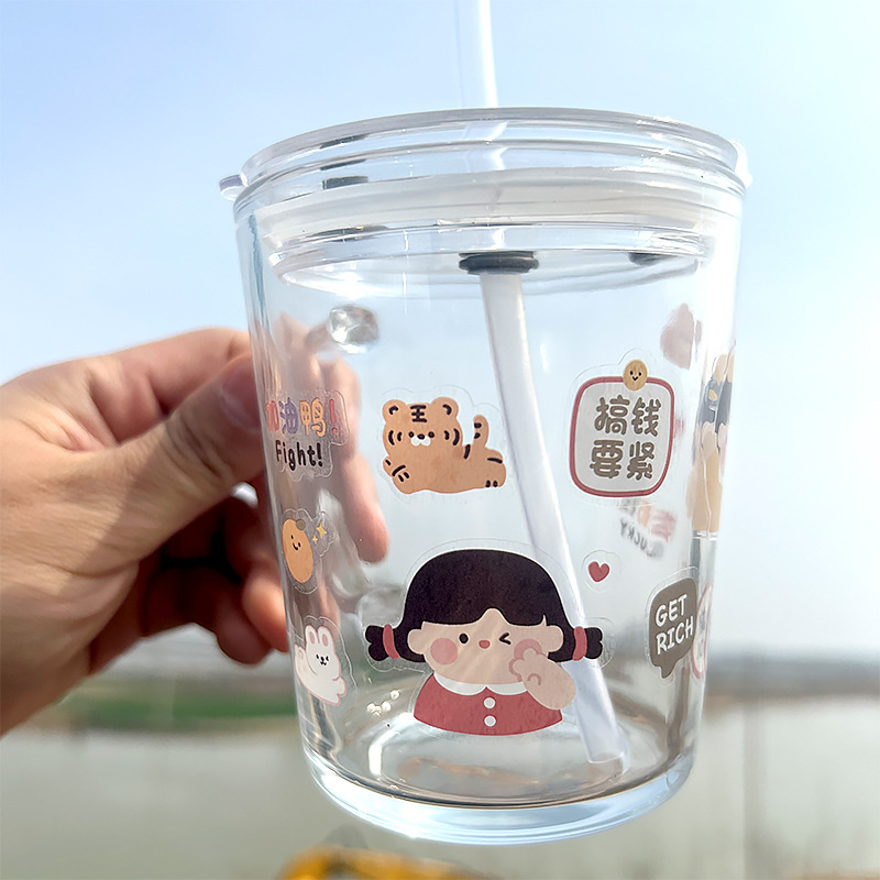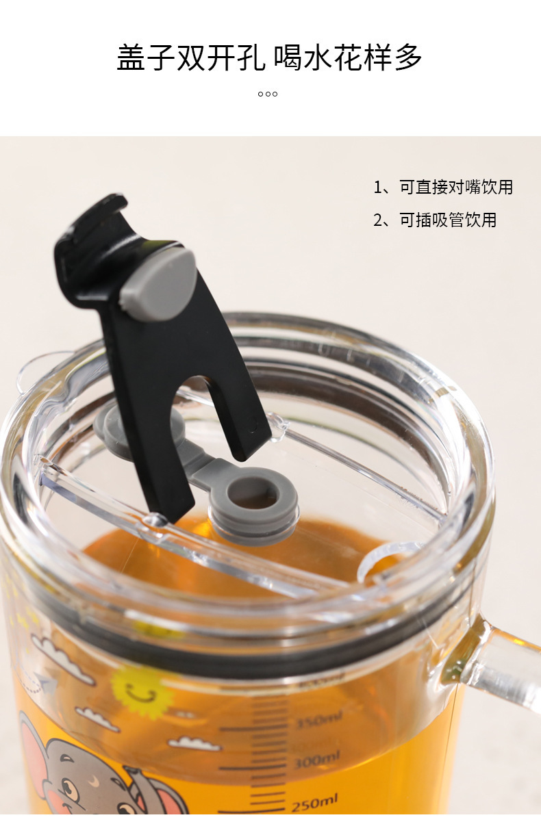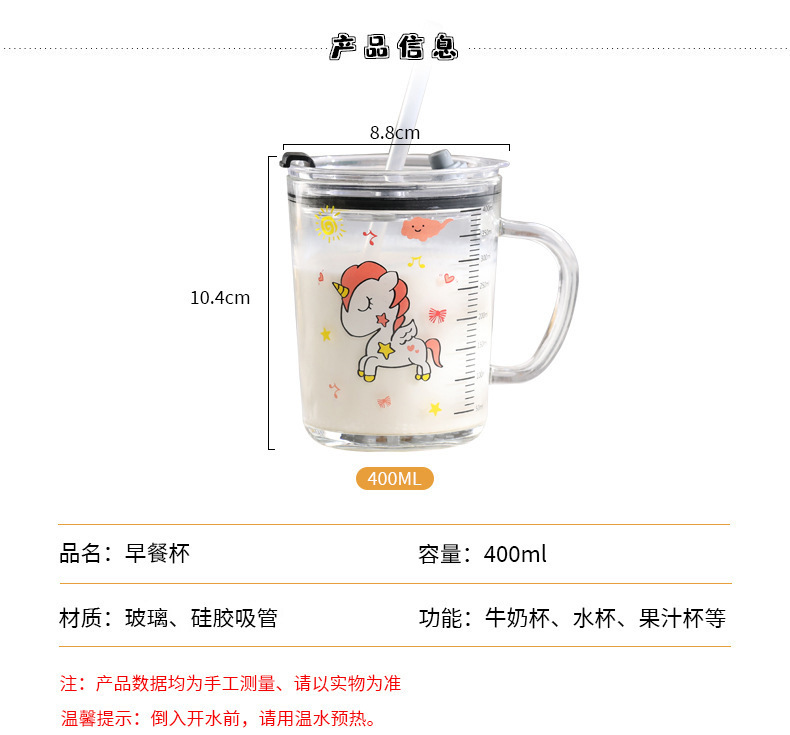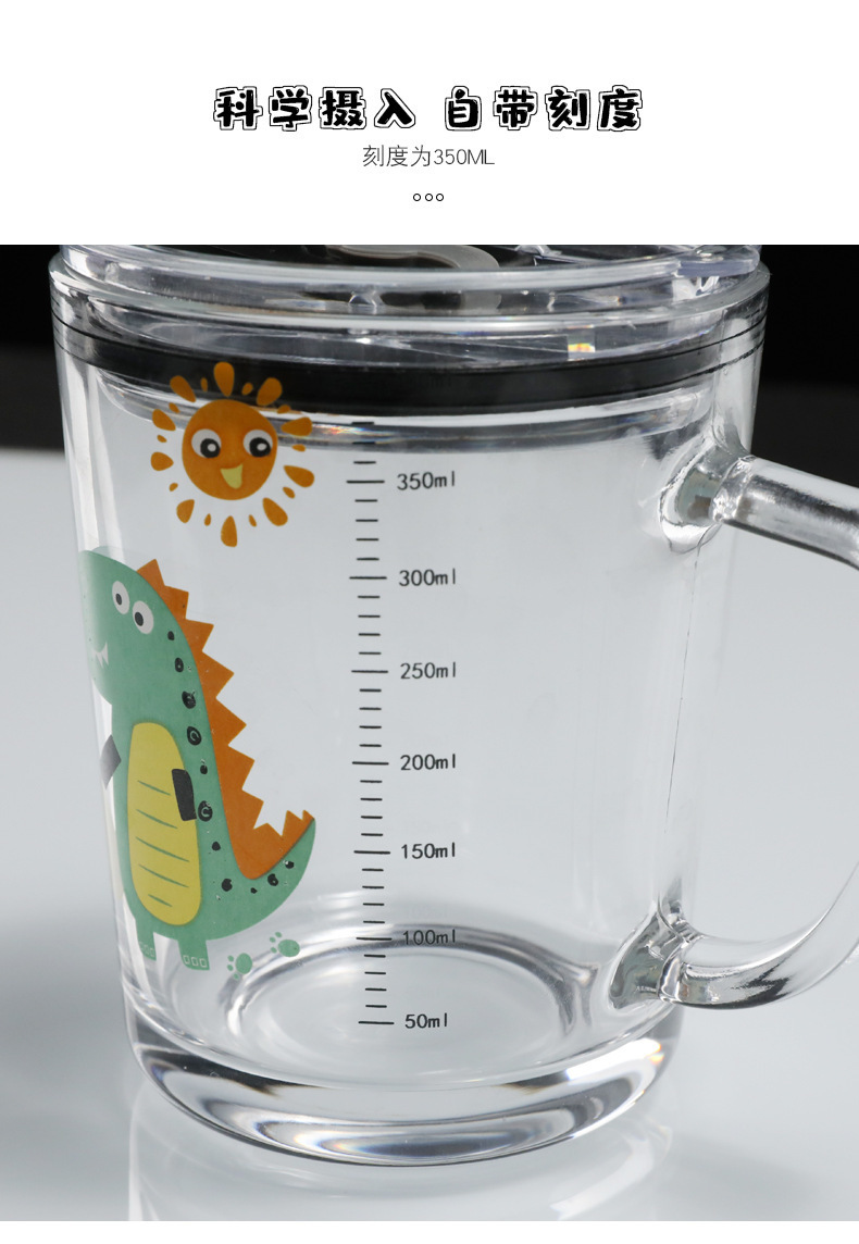 학생 아침 식사 가정용 손잡이가있는 도매 어린이 졸업 물 컵 우유 컵 만화 유리 빨대 분유 컵