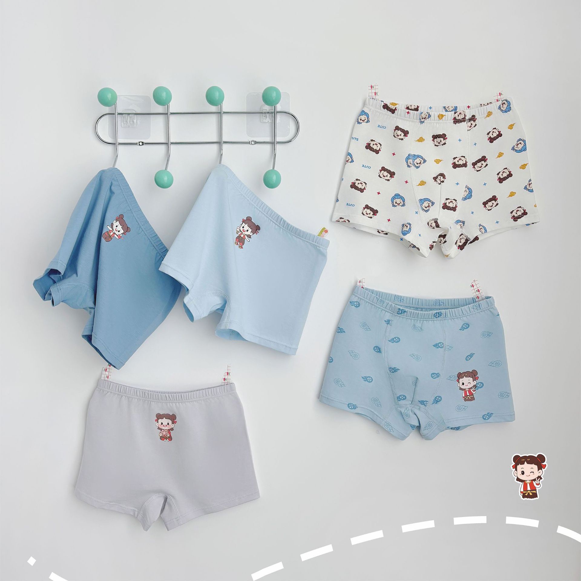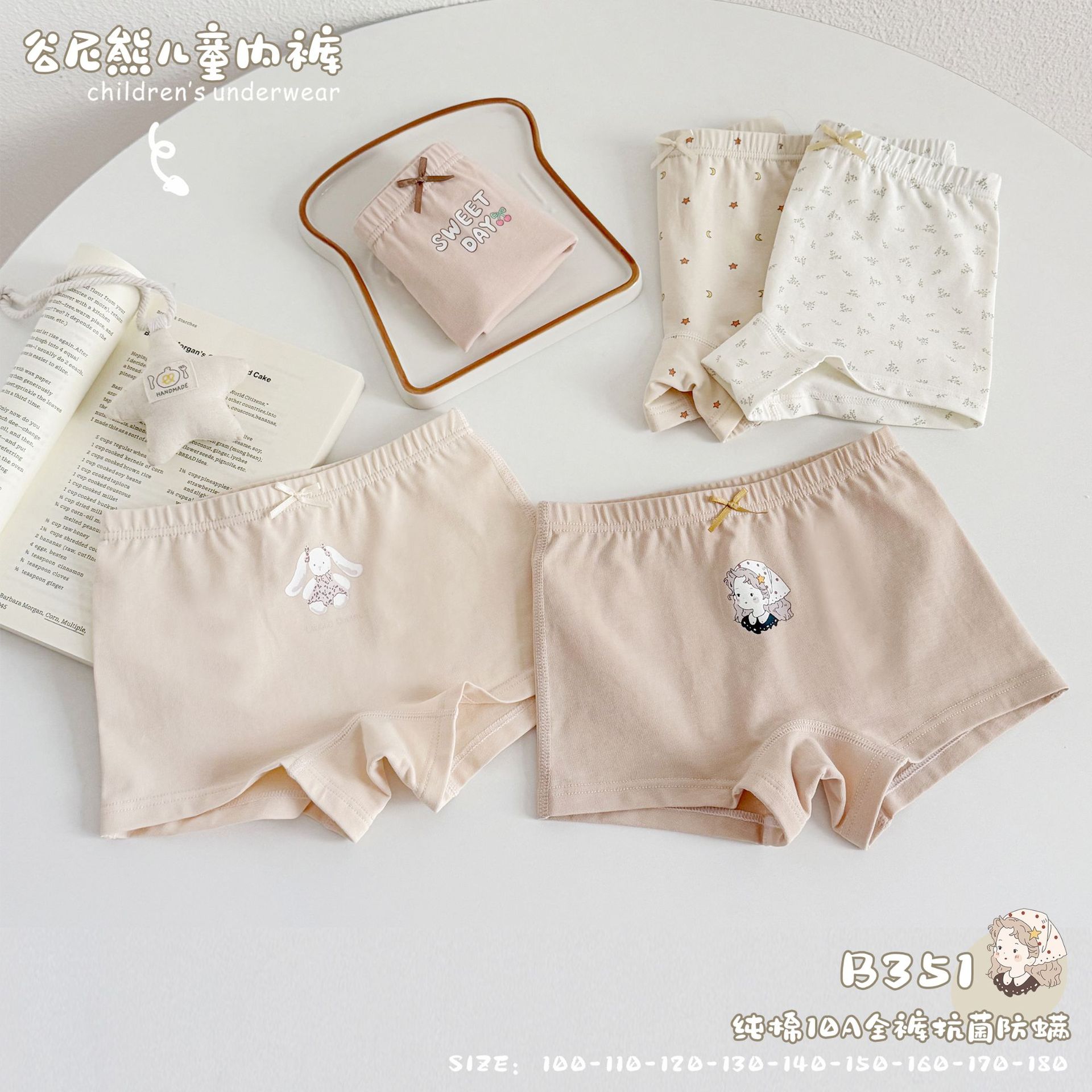 Gu Nixiong 여아 브리프 면 어린이 바지 면 엉덩이 없음 항균 남아 사각팬티 반바지스토어 가기