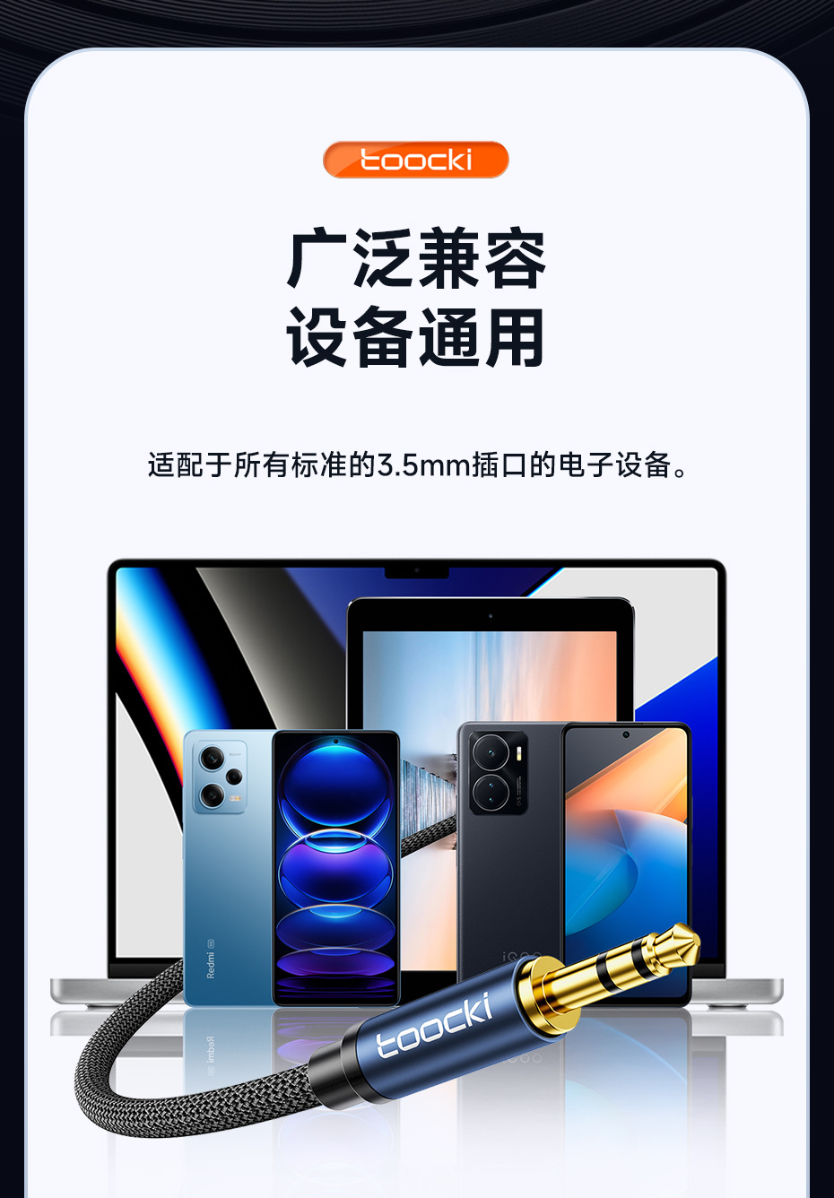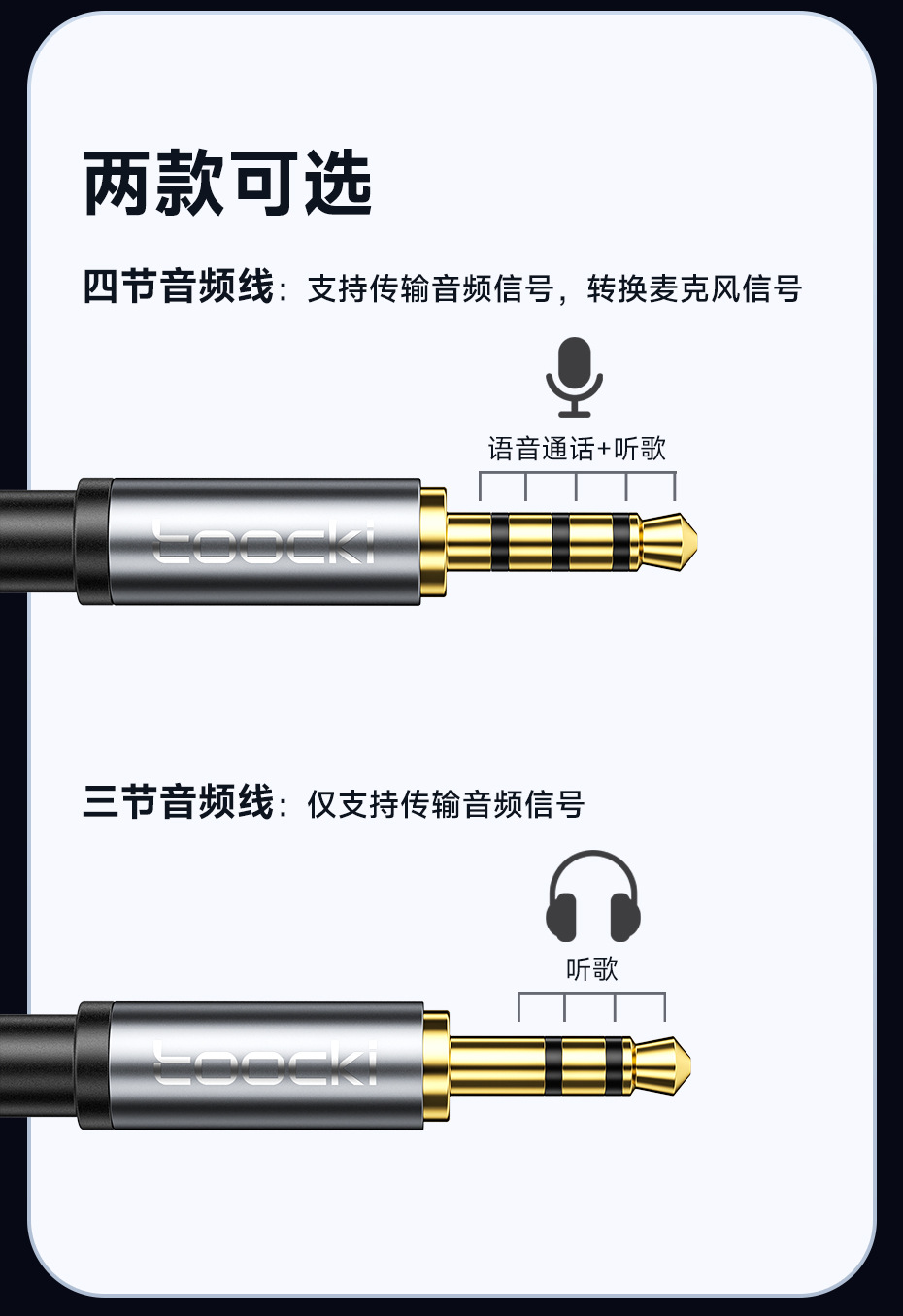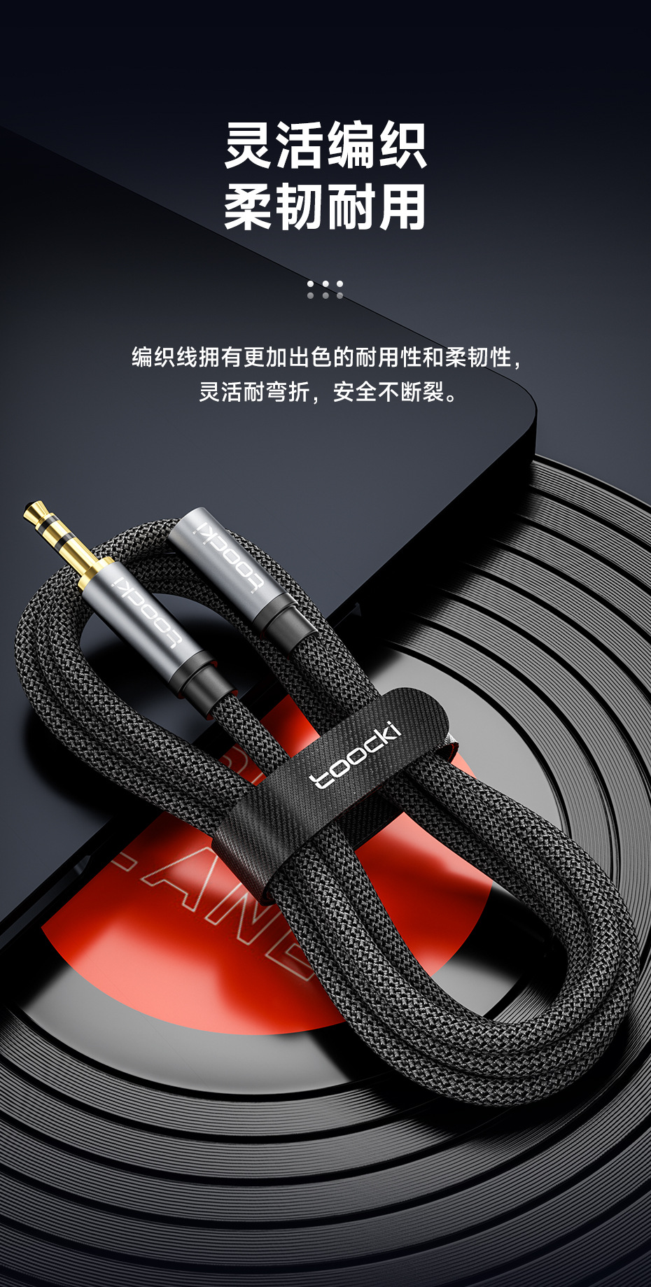 3.5mm 소켓 전자 장비용 Toocki 매직 플루트 3.5 남성 대 남성/남성 대 여성 3 섹션 AUX 오디오 케이블