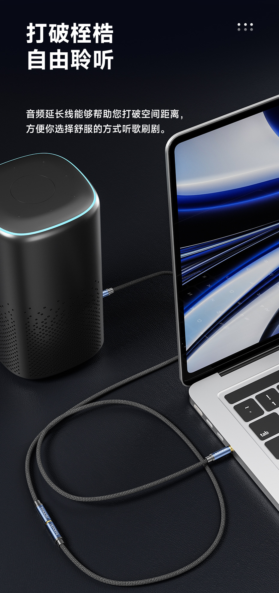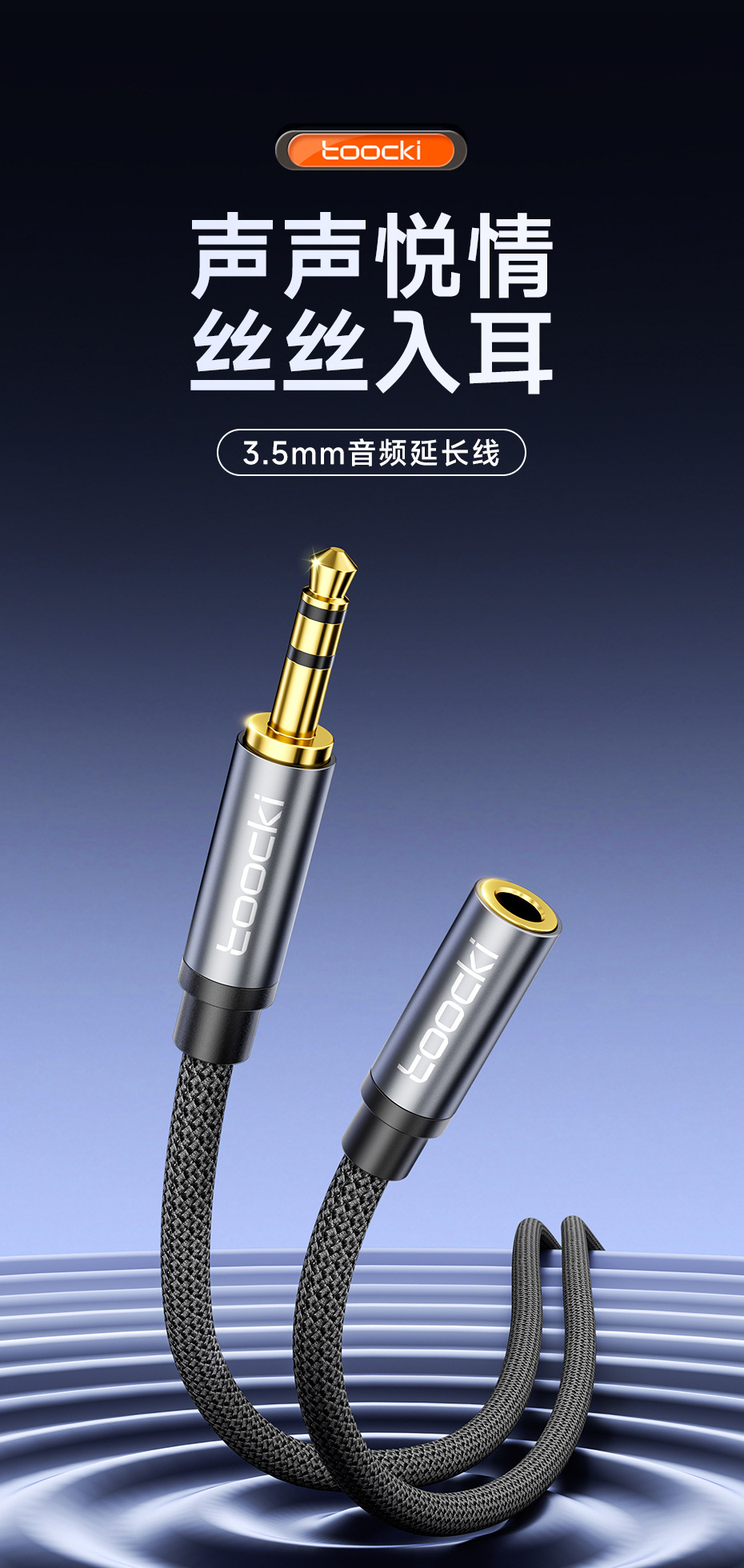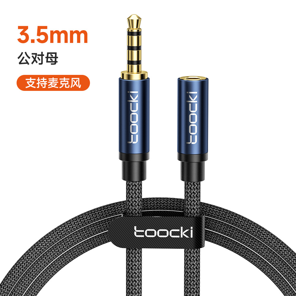 3.5mm 소켓 전자 장비용 Toocki 매직 플루트 3.5 남성 대 남성/남성 대 여성 3 섹션 AUX 오디오 케이블스토어 가기