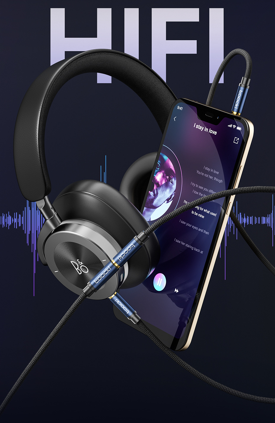 • Toocki 매직 플루트 3.5 남성-여성 3 섹션 AUX 오디오 라인 1m 블루
