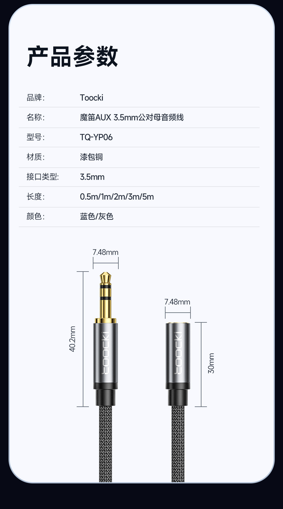 • Toocki 매직 플루트 3.5 남성 대 여성 3 섹션 AUX 오디오 라인 3m 블루