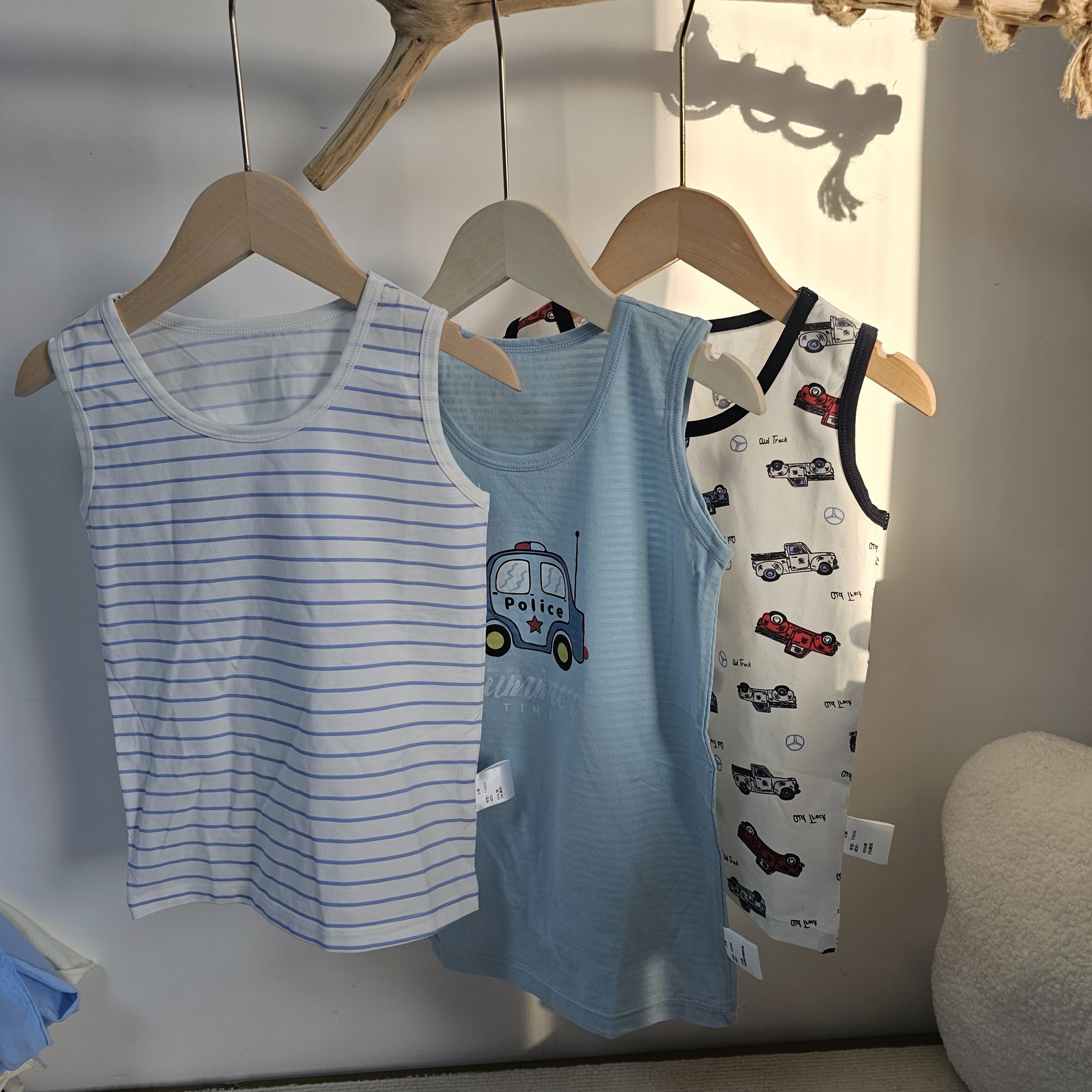어린이 조끼 여름 2024 새 소년 만화 바닥 셔츠 소녀 민소매 티셔츠 재킷 아동복 도매스토어 가기
