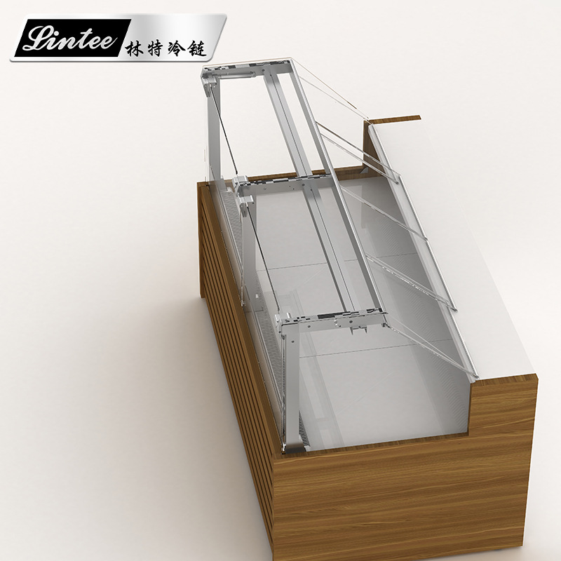 Zhongshan Linite 맞춤형 나뭇결 직선 유리 델리 콘서트 스플릿 냉장고 스시 빵 스낵 디스플레이 캐비닛