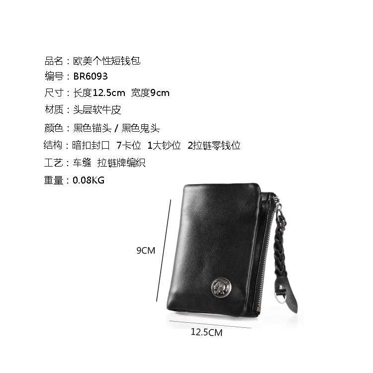 새로운 첫 번째 레이어 소 가죽 남성용 짧은 지갑 국경 간 핫 스타일 정품 가죽 지갑 소년 얇은 신용 카드