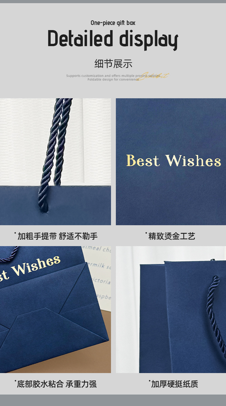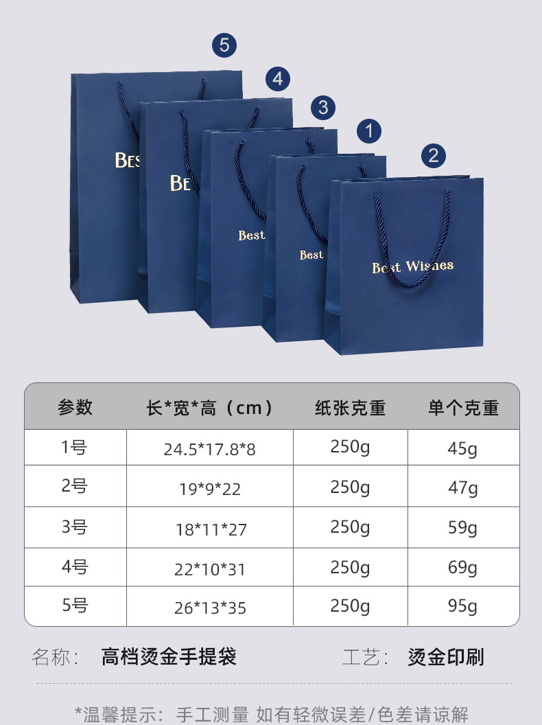 재고 블루 선물 가방 손 종이 가방 절묘한 쇼핑 대형 포장 가방 화장품 선물 가방