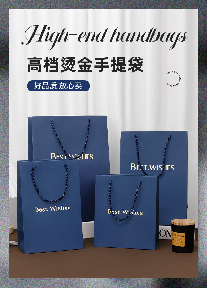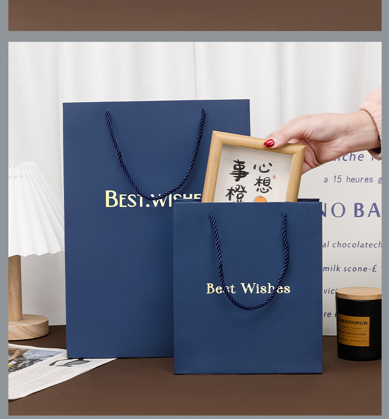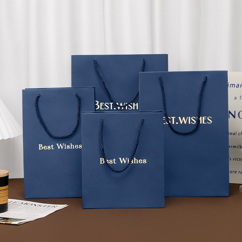 재고 블루 선물 가방 손 종이 가방 절묘한 쇼핑 대형 포장 가방 화장품 선물 가방스토어 가기