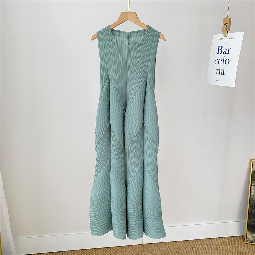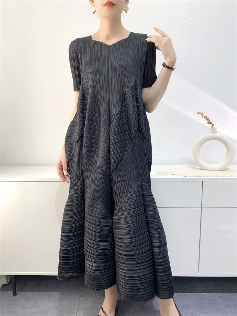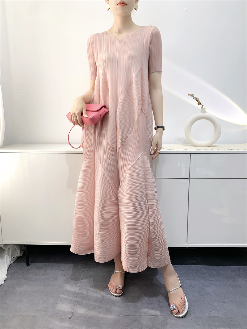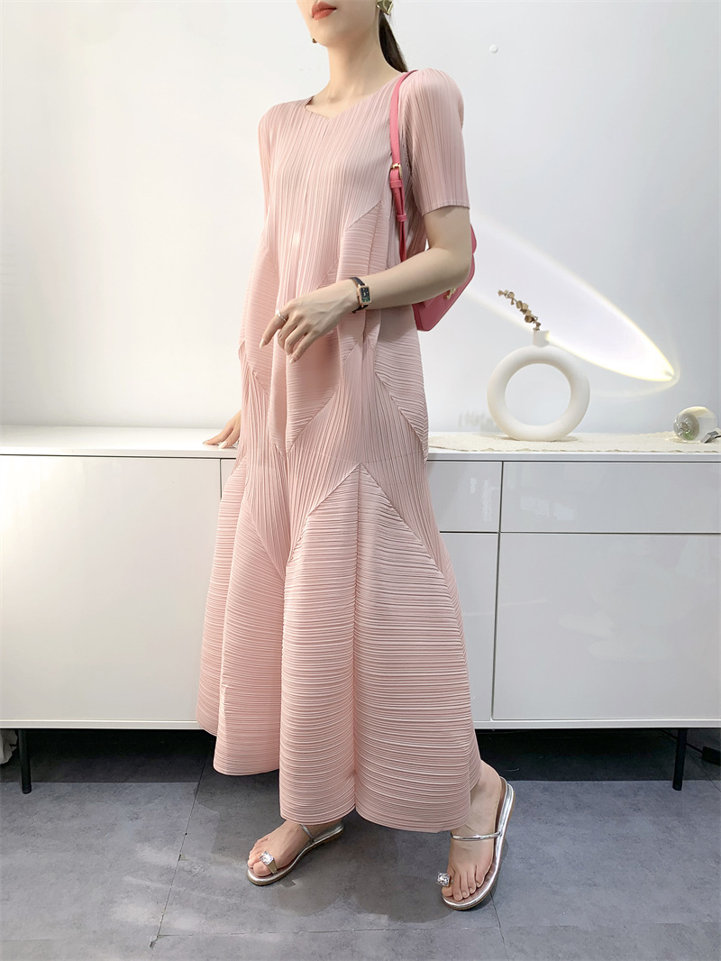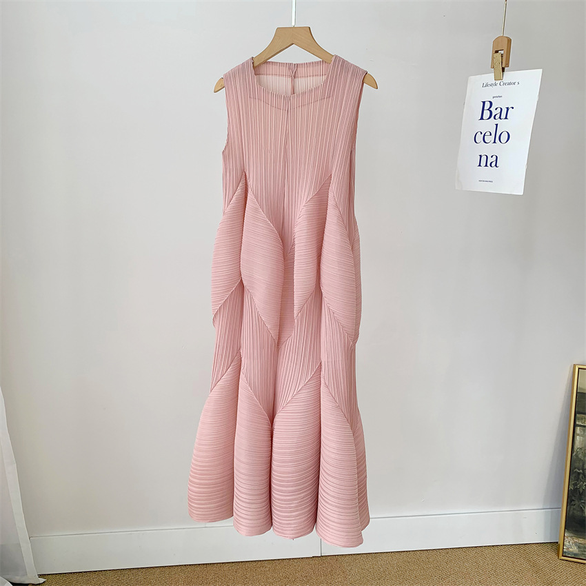 2025 여름 드레스 여성 주름 치마 패션 연령 감소 느슨한 대형 중간 길이 버블 주름 치마 대외 무역