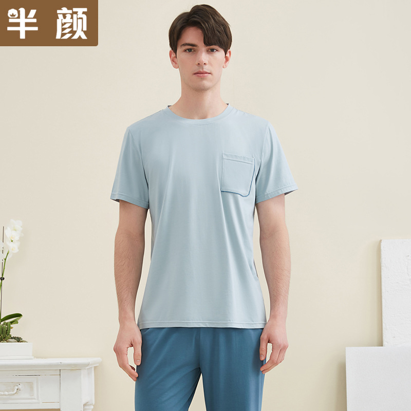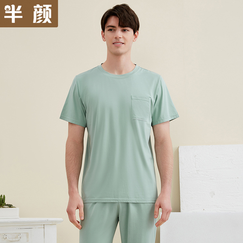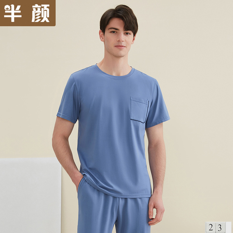 브랜드 공장 직통 봄 여름 커플 남성용 심플 니트 스트레치 난초 Modell 면 반팔 바지 가정용 옷
