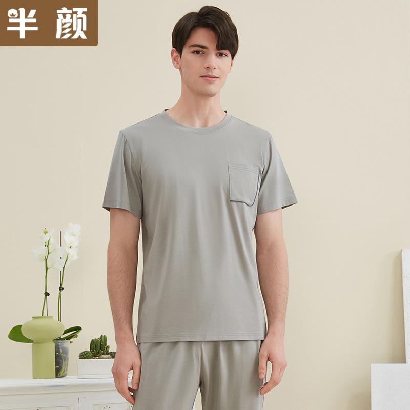 브랜드 공장 직통 봄 여름 커플 남성용 심플 니트 스트레치 난초 Modell 면 반팔 바지 가정용 옷스토어 가기