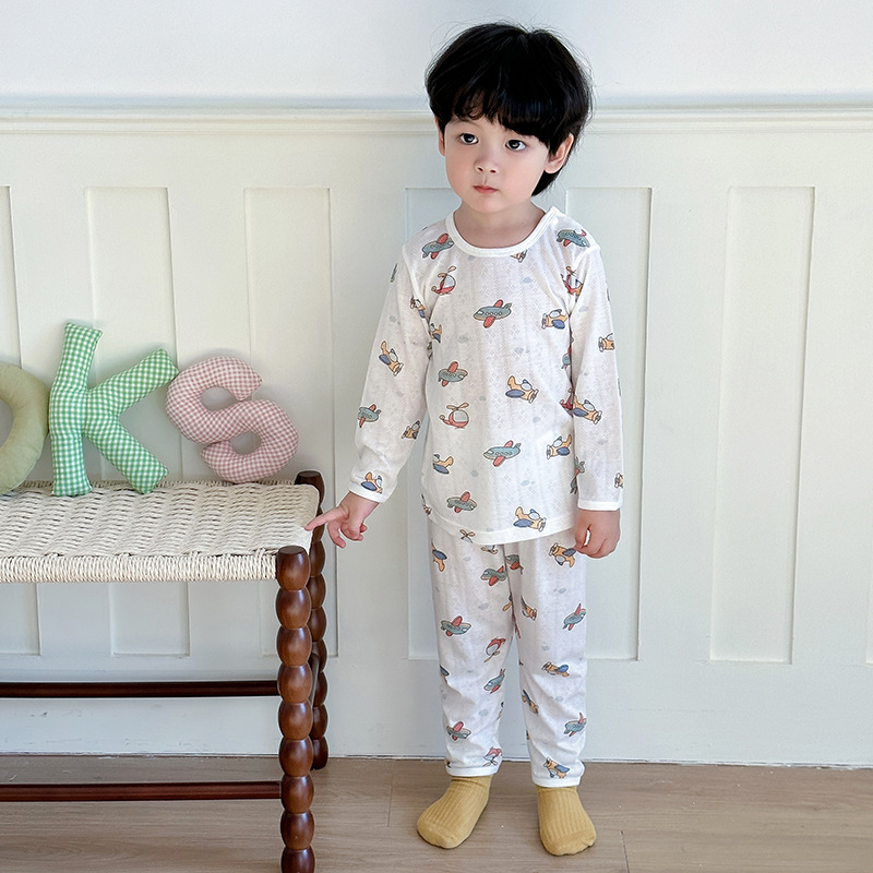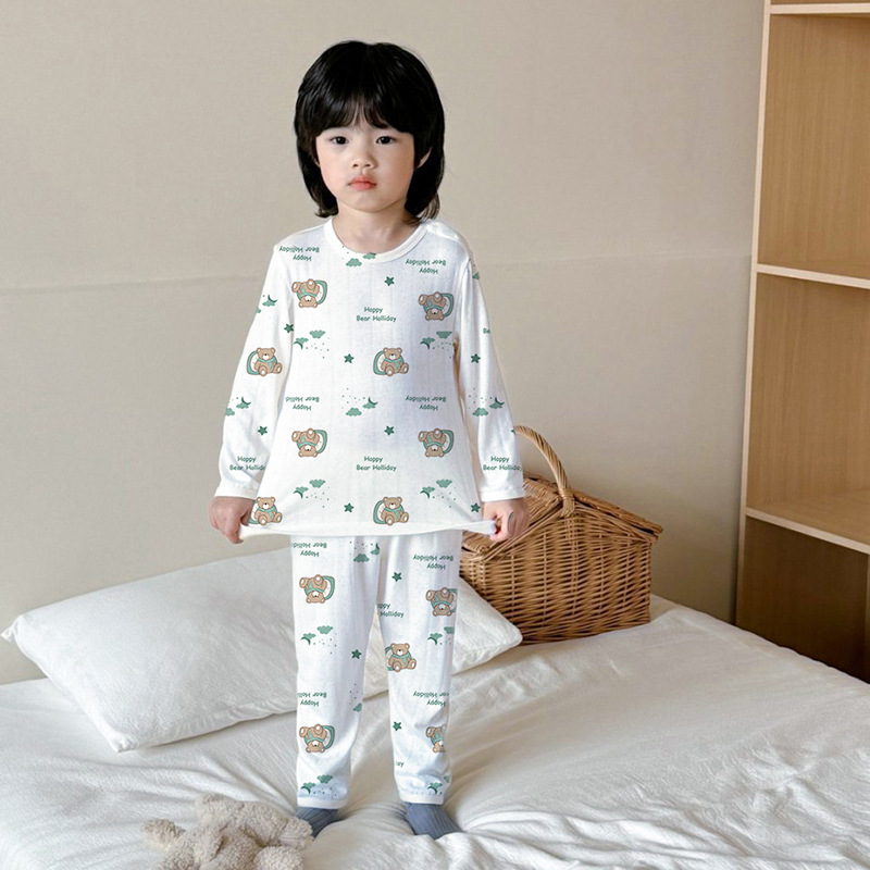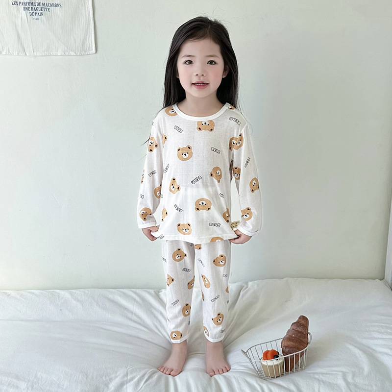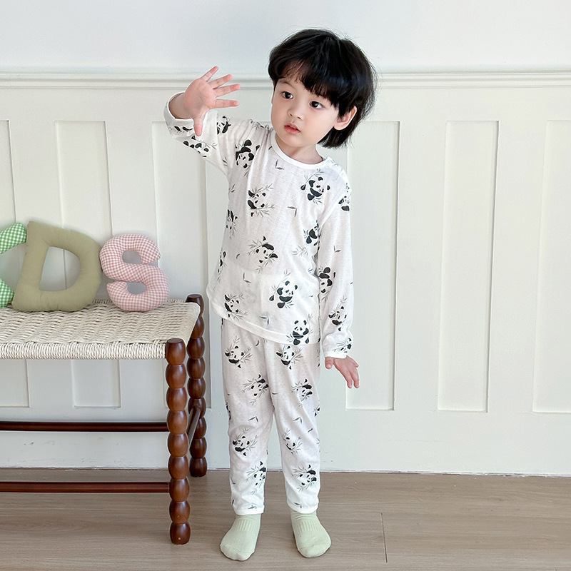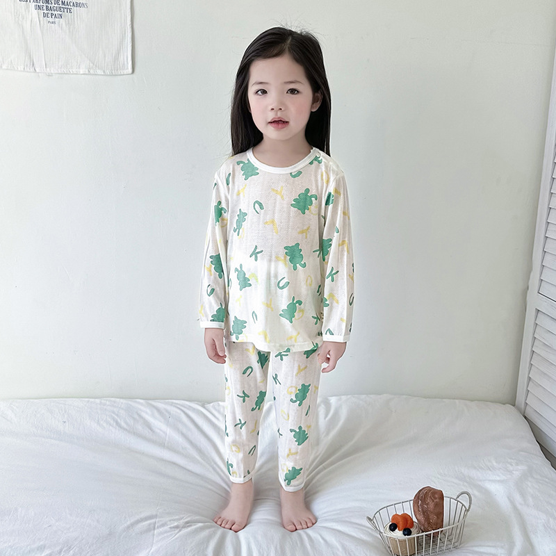 73-130 대나무 섬유 긴팔 세트 남녀 아기용 봄 여름 긴팔 에어컨 의류 아동 잠옷 속옷 1스토어 가기