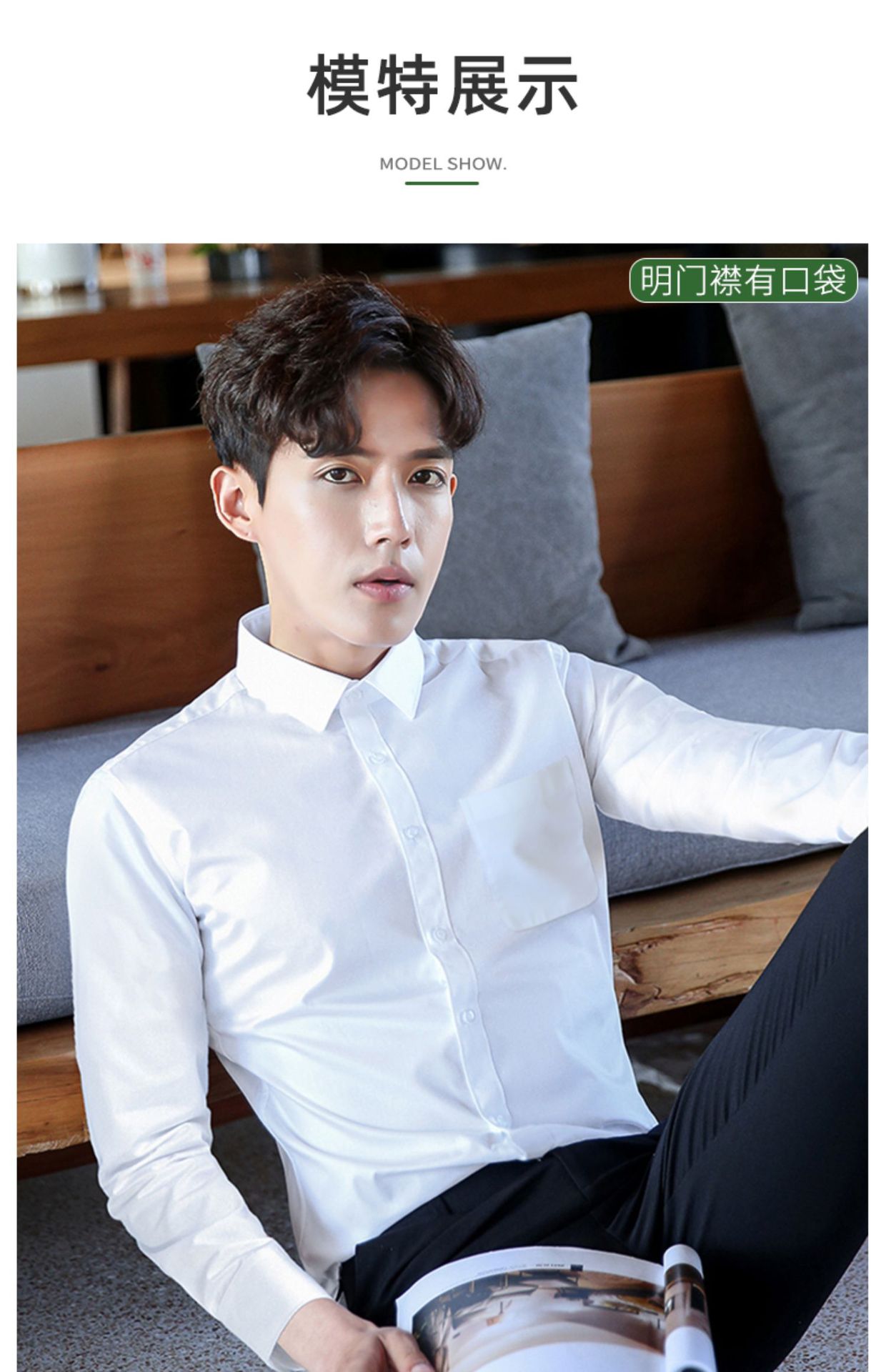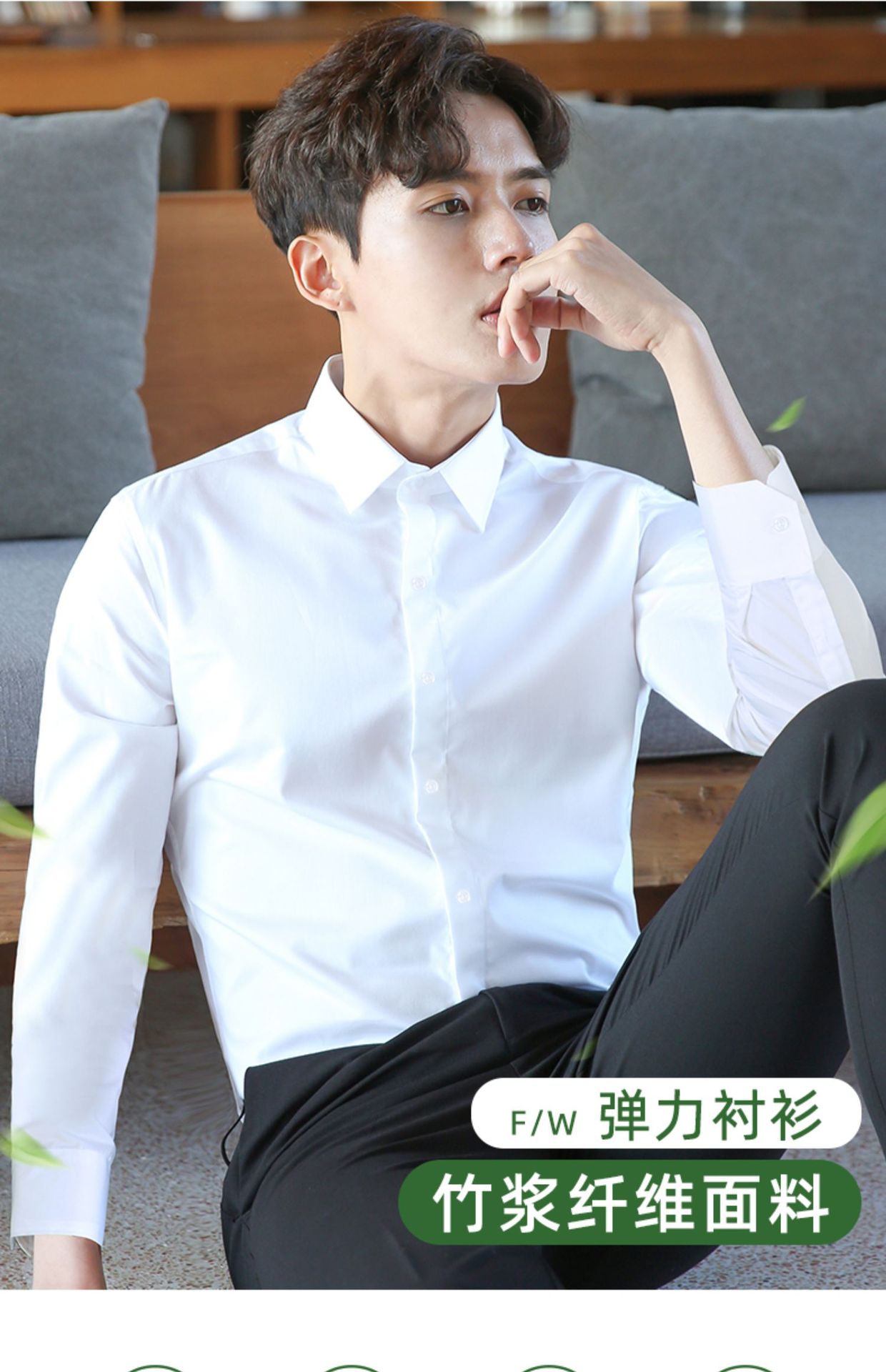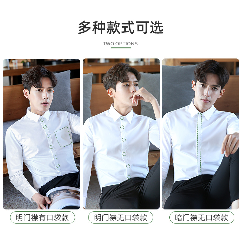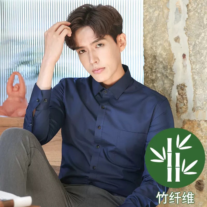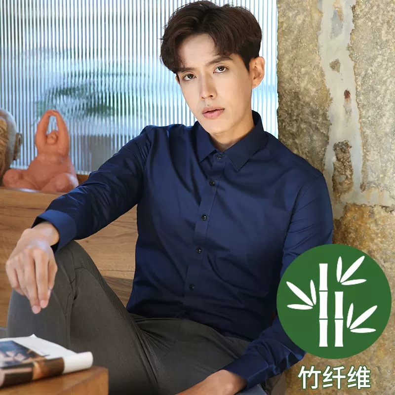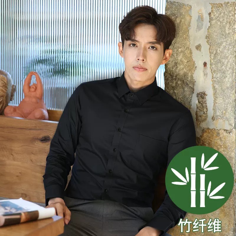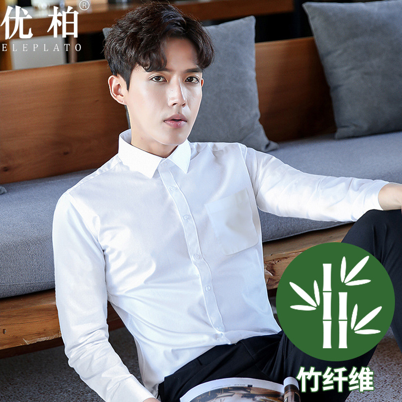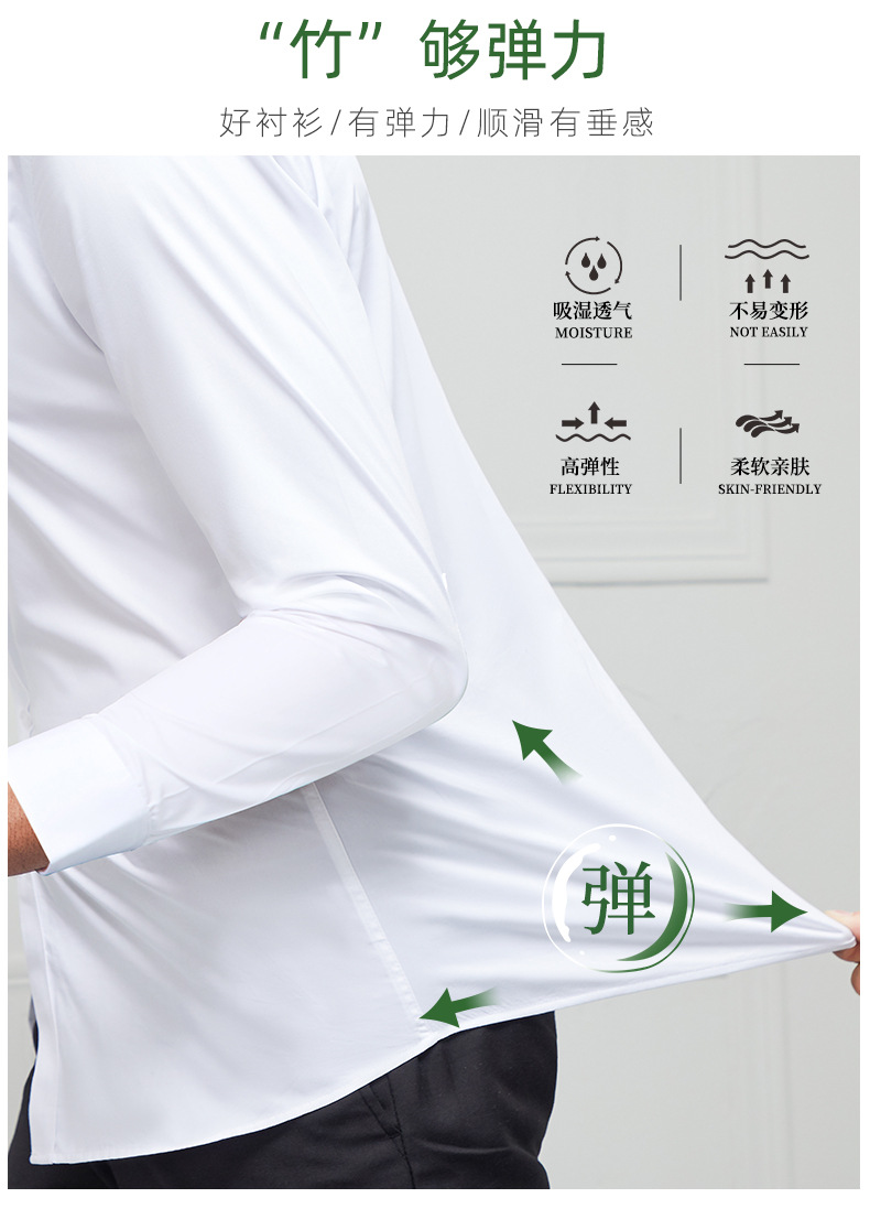 2024 봄 새 셔츠 남성 흰색 대나무 섬유 긴 소매 비 다림질 셔츠 남성 전문 원피스 머리카락 세대스토어 가기