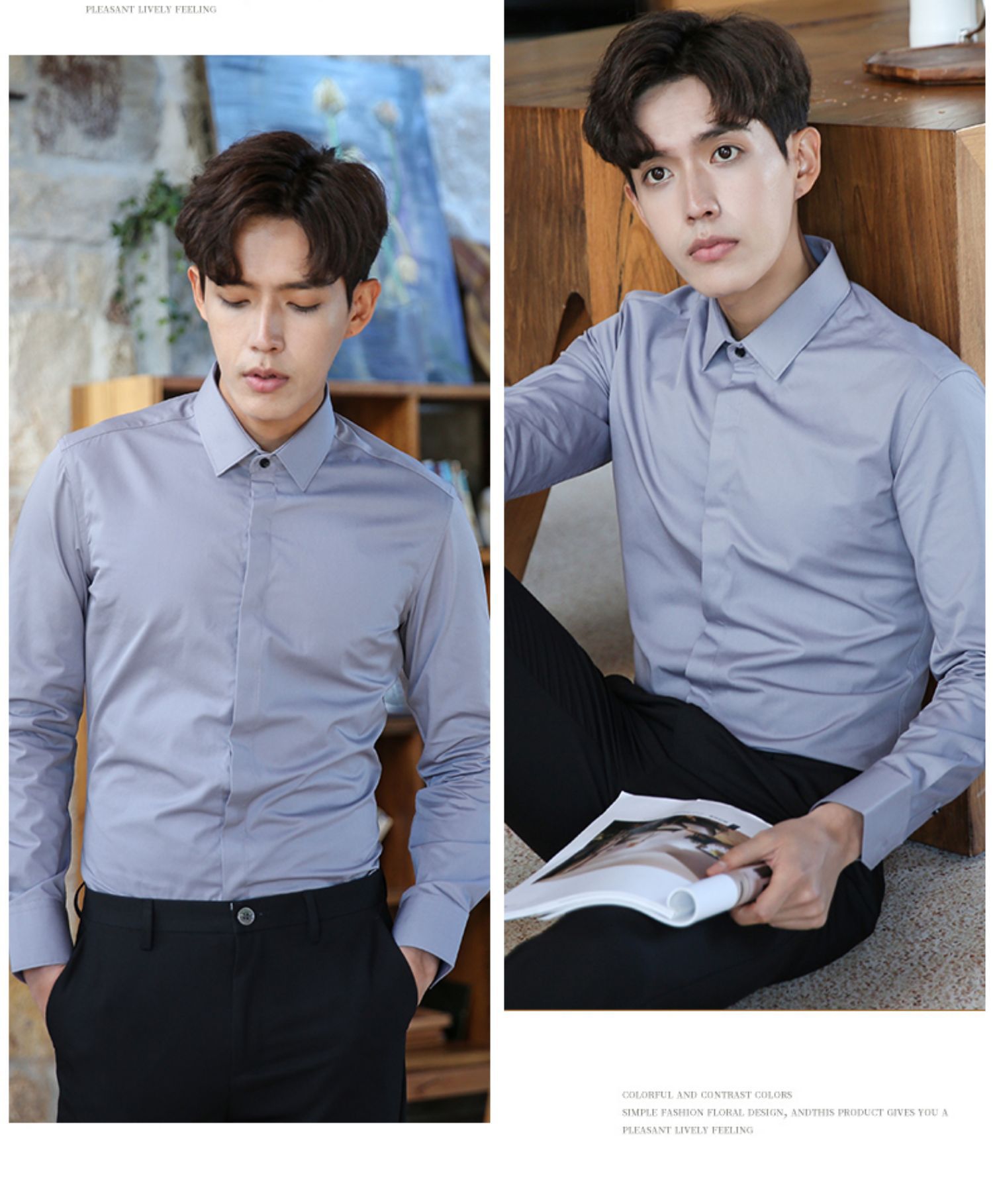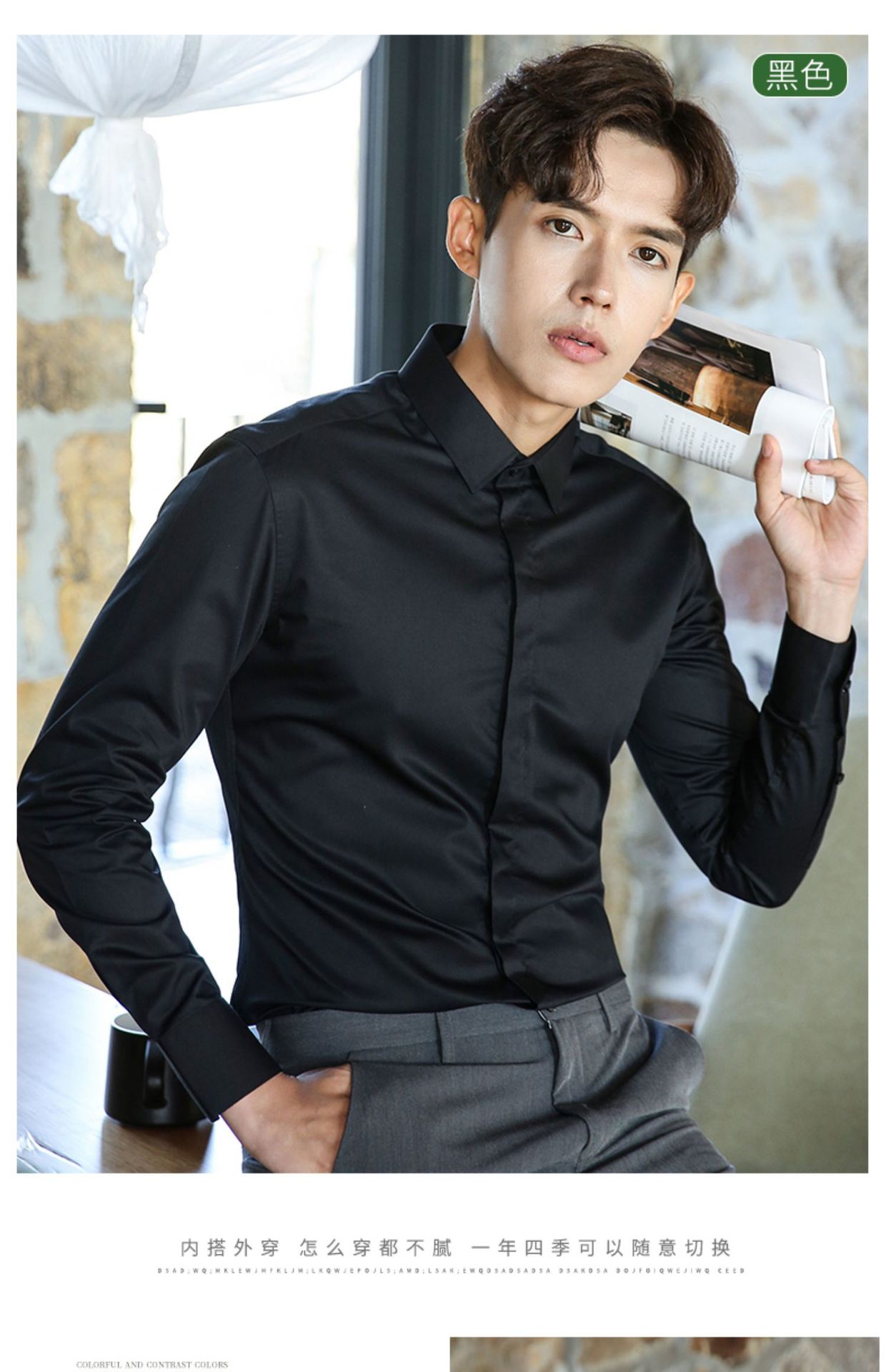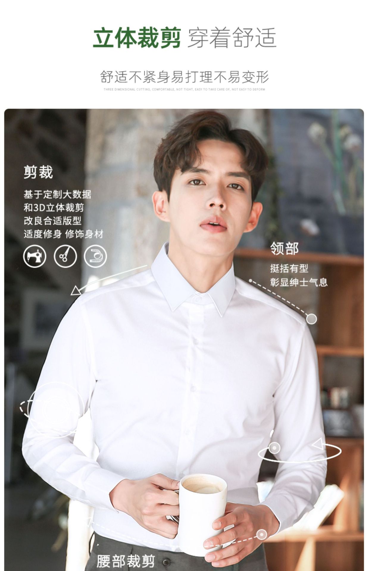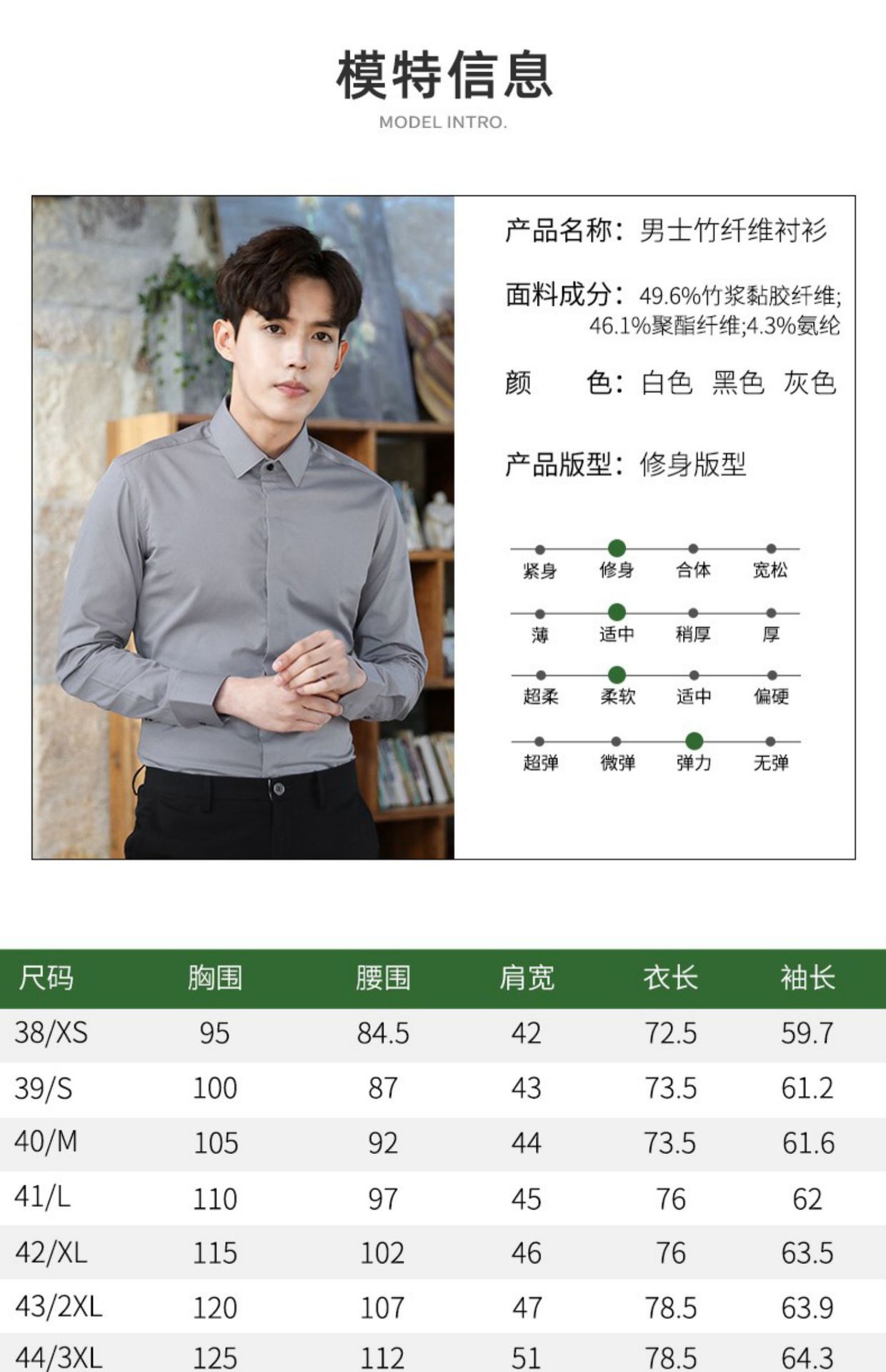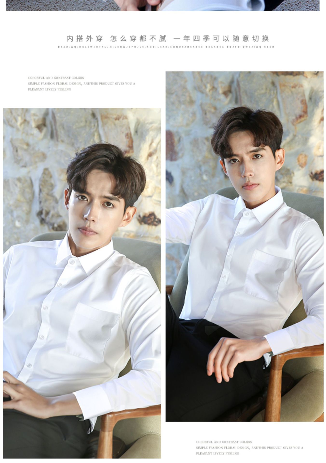 2024 봄 새 셔츠 남성 흰색 대나무 섬유 긴 소매 비 다림질 셔츠 남성 전문 원피스 머리카락 세대스토어 가기